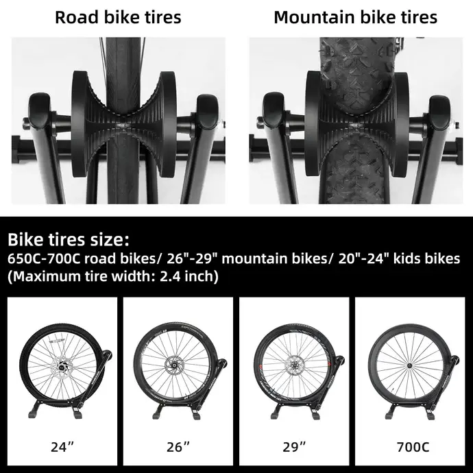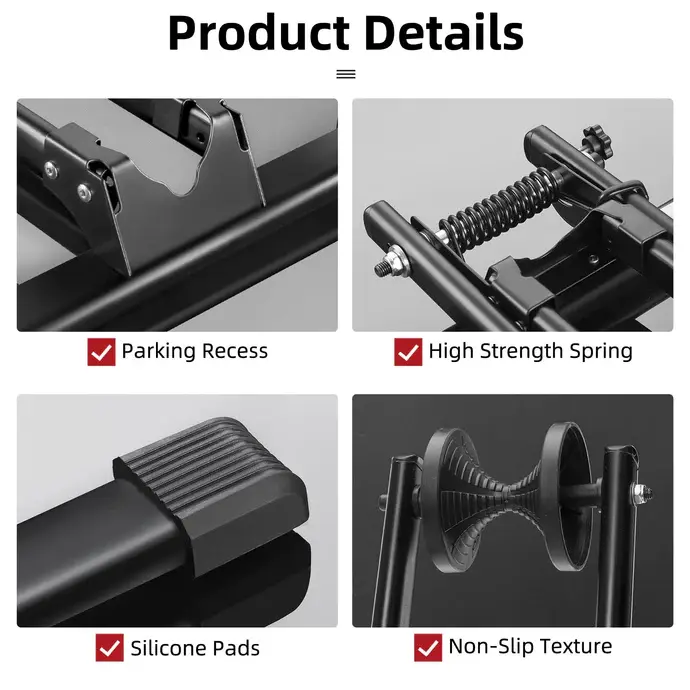 ·【Great Stability & Simple Push In】Different from other bike floor stand, Don’t need to lift the bike, only push the front or rear wheel into the rack, the bike will stand stable. Besides, the base of bike rack is more wider than others, Also comes with 4 silicone non-slip pads, so it is stable and perfectly hold your bike steady.