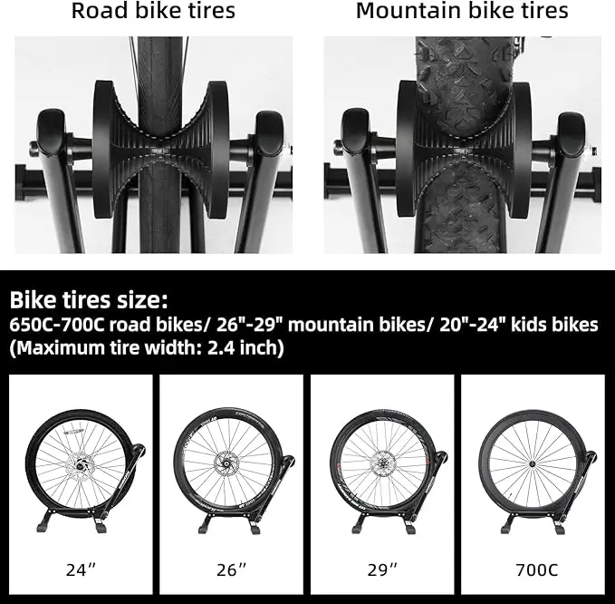·【Great Stability & Simple Push In】Different from other bike floor stand, Don’t need to lift the bike, only push the front or rear wheel into the rack, the bike will stand stable. Besides, the base of bike rack is more wider than others, Also comes with 4 silicone non-slip pads, so it is stable and perfectly hold your bike steady.