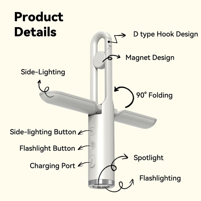 5. Foldable 4in1 Multifunctional Camping Light, Outdoor Light, SOS Light, Flashlight,SteadyLight,Seamless Folding Design, Extended Battery For 24H Use