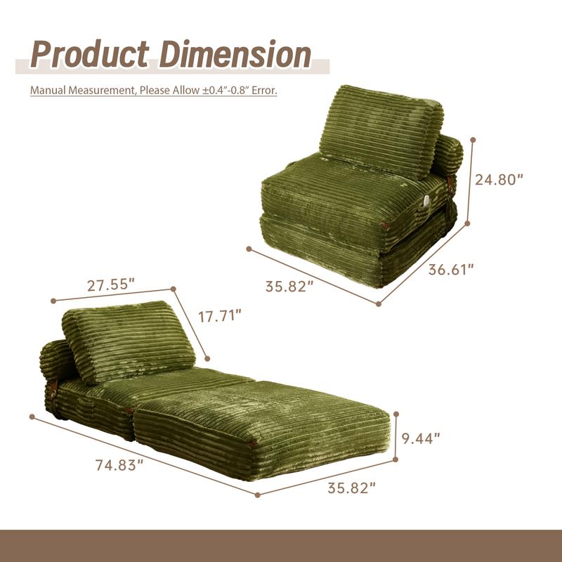 Elevate your living area with the CAODOC Foldable Cloud Sofa Bed. This versatile piece effortlessly converts from a lounge chair to a cozy bed. Perfect for living rooms or bedrooms, it adapts with flexibility and style. Enhance your room effortlessly with this multifunctional sofa bed.
