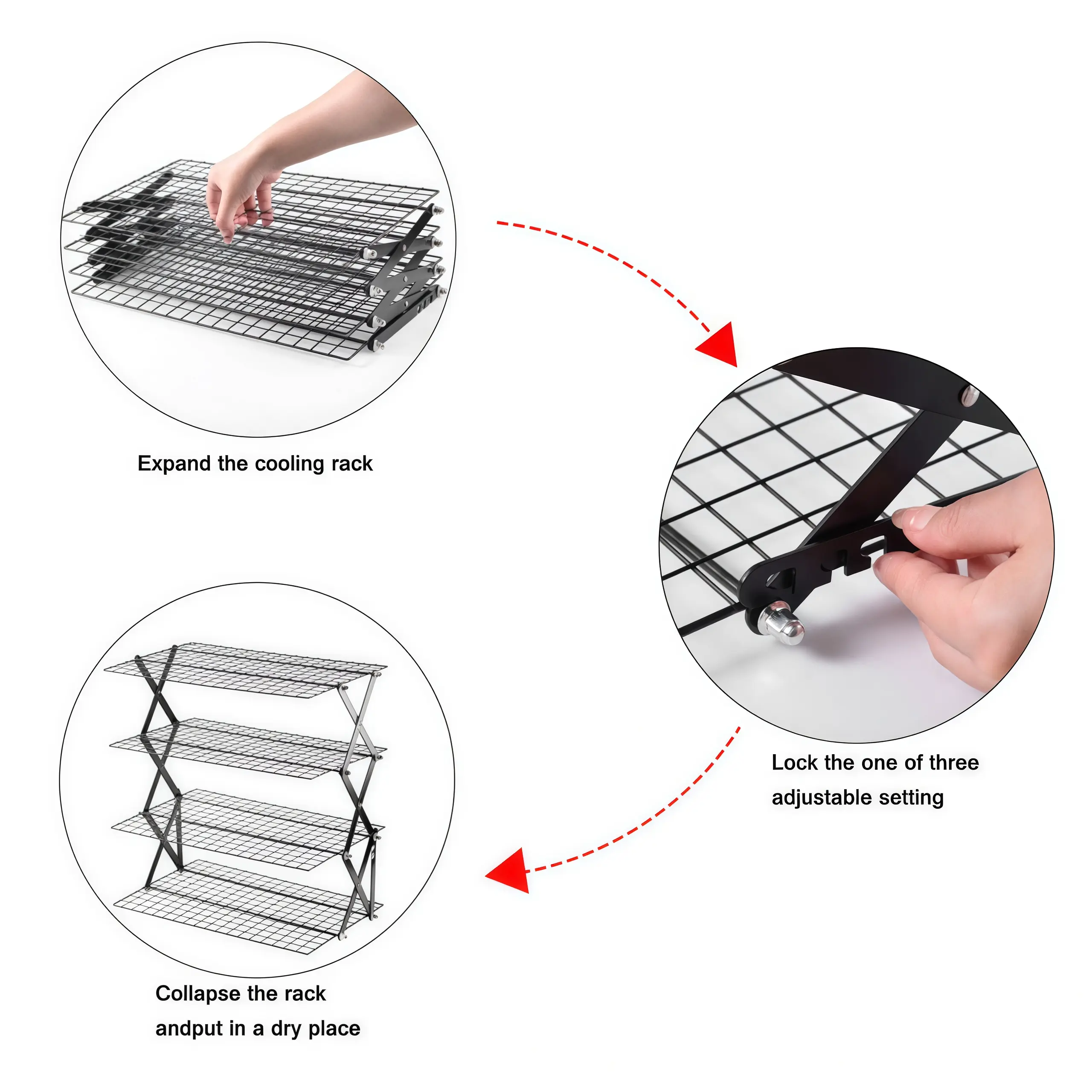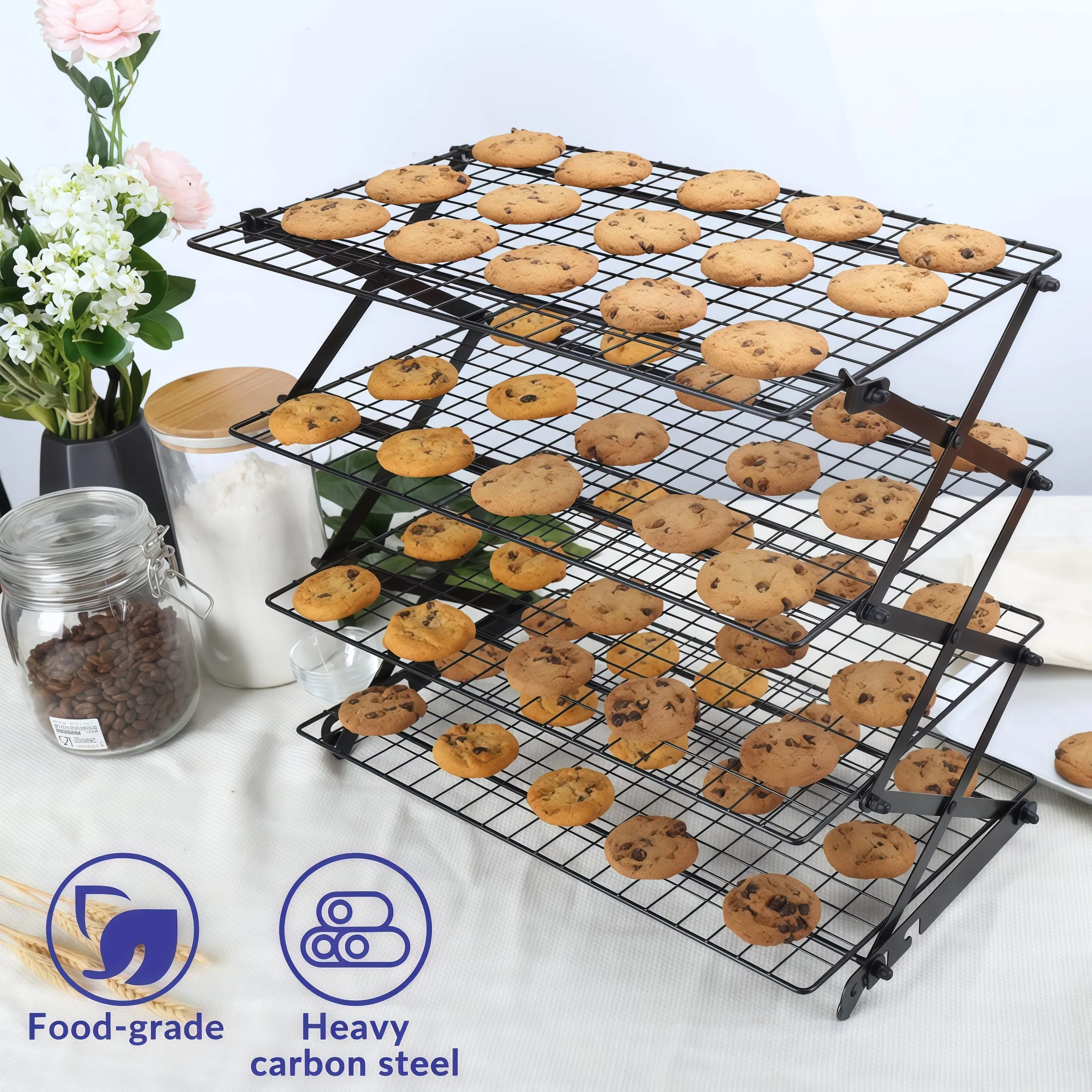2/3/4 Layer Upgrade Foldable Cooling Rack Adjustable 3 Settings Design Stackable Baking Cooking Drying Wire Cooling Rack for Cookie Baking Women's Gift Husband's Gift Women's Gift Bread Mat Kitchen Gadgets Camping BBQ Rack