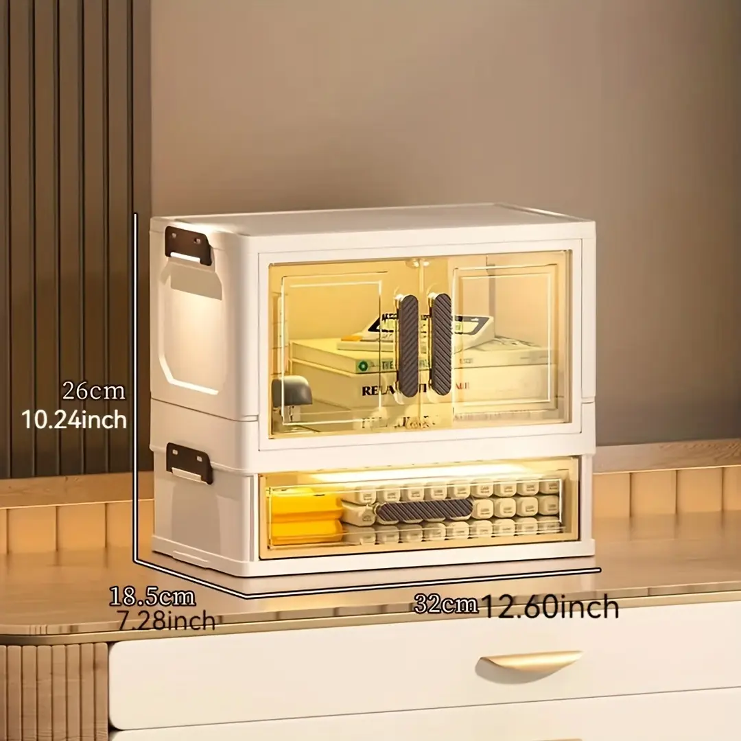 Are you tired of cluttered vanities and disorganized desktops?Say goodbye to mess and hello to elegance with our innovative Foldable Large Capacity Cosmetics Storage Cabinet!Designed for the modern individual who values both style and functionality, this cabinet is the perfect blend of aesthetics and practicality.