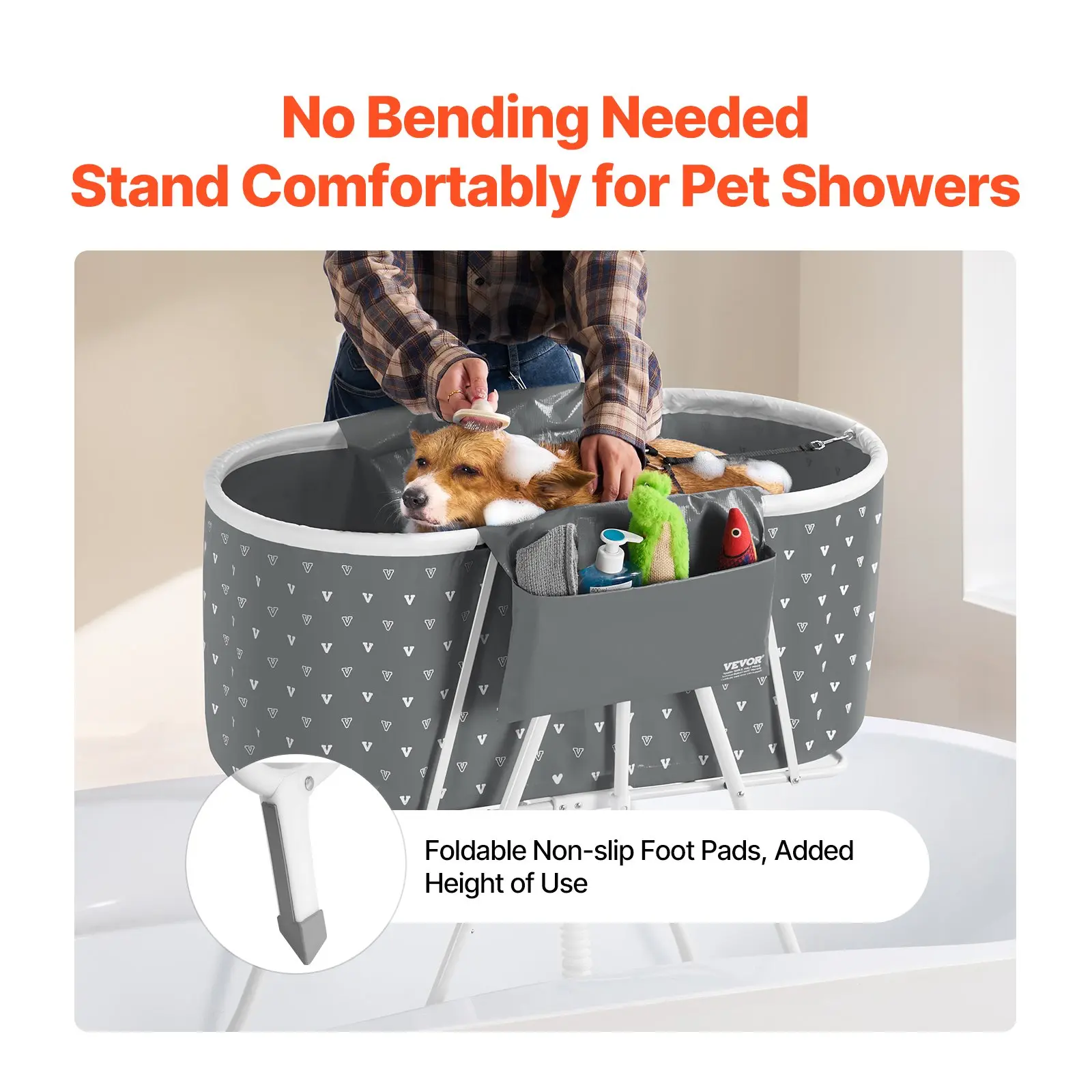 5. VEVOR Foldable Dog Bathtub Elevated Grey Shower Station for Small & Medium Dogs & Cats