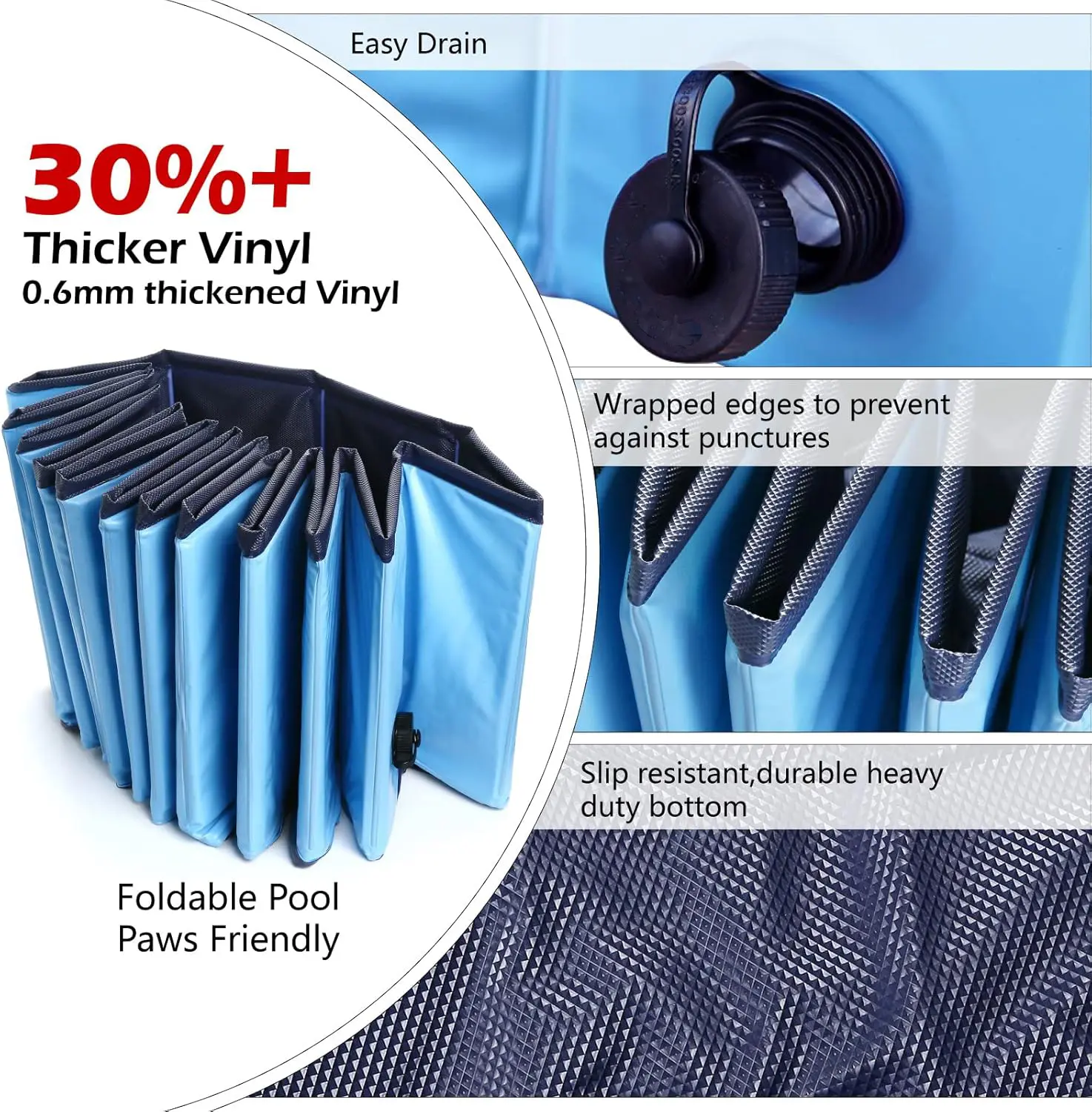 5. Foldable Dog Kiddie Pool Portable Hard Plastic Doggie Swimming Pool Anti-Slip Collapsible Pets Bath Tub Suitable for Kids Indoor Outdoor Backyard Use