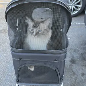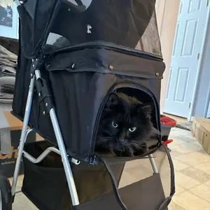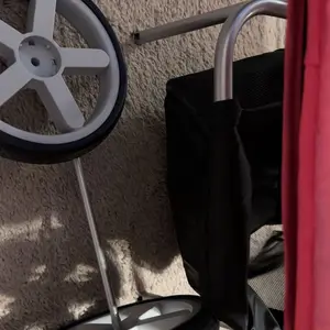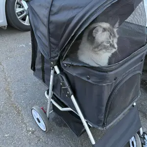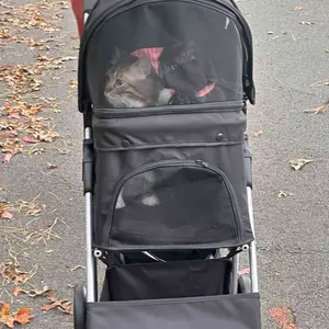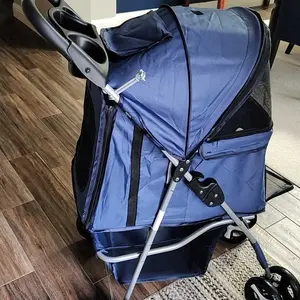 The collapsible stroller is designed for easy folding, aiming to reduce hassle and conserve space, and constructed from high-quality, heavy-duty materials intended to endure everyday wear and tear, as well as harsh weather conditions.