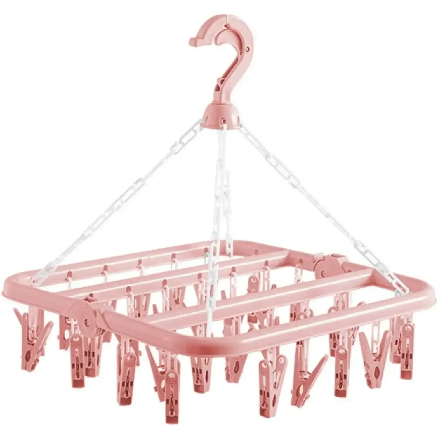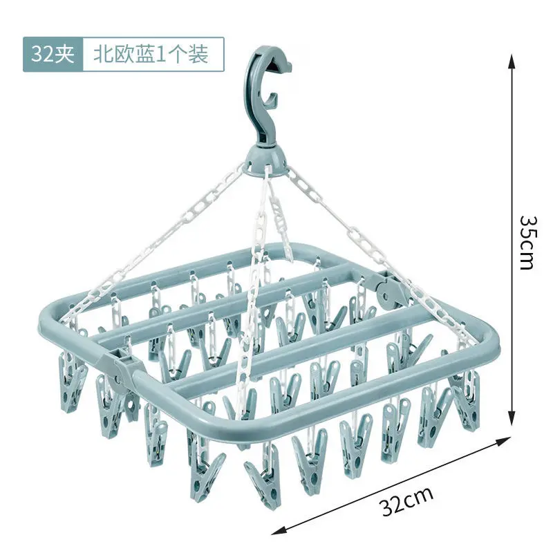 Drying rack, equipped with 32 clips and foldable drip hangers, saving space