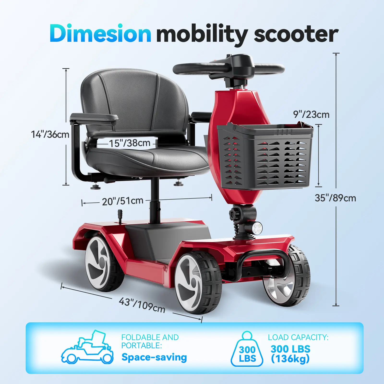HOMYKING Foldable Electric Scooter for Elderly & Adults Comfortable 300lb Cushion 15km Range 100lb Foldable Design Christmas Gifts Black Friday Specials
