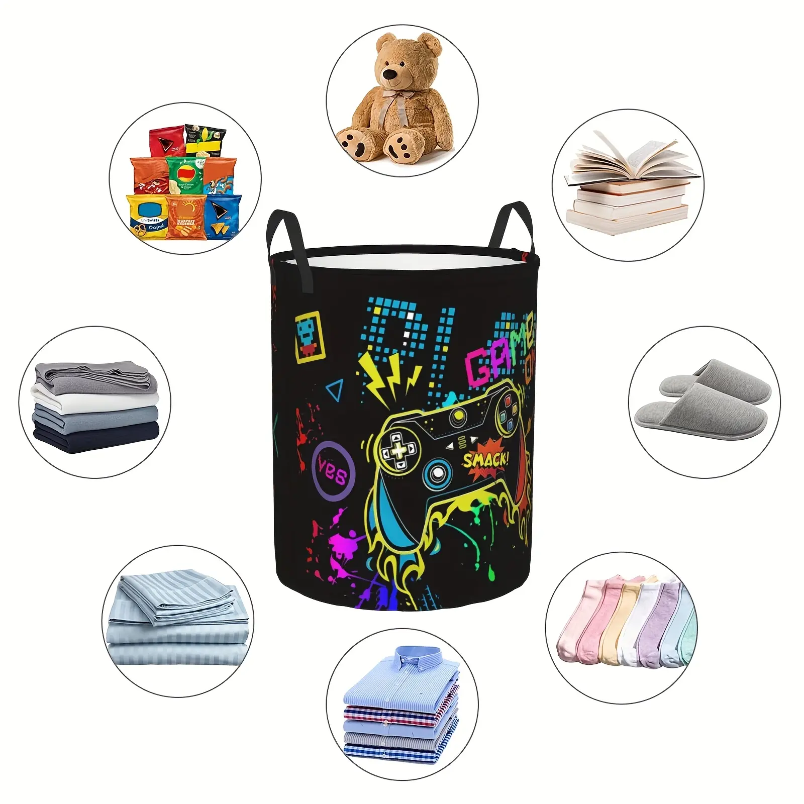 Foldable Game Controller Laundry Basket, Gamer Handheld Console Bedroom Laundry Hamper, Large Capacity Bathroom Storage Bag, University Dormitory Living Room Toy Organizer, Laundry Basket