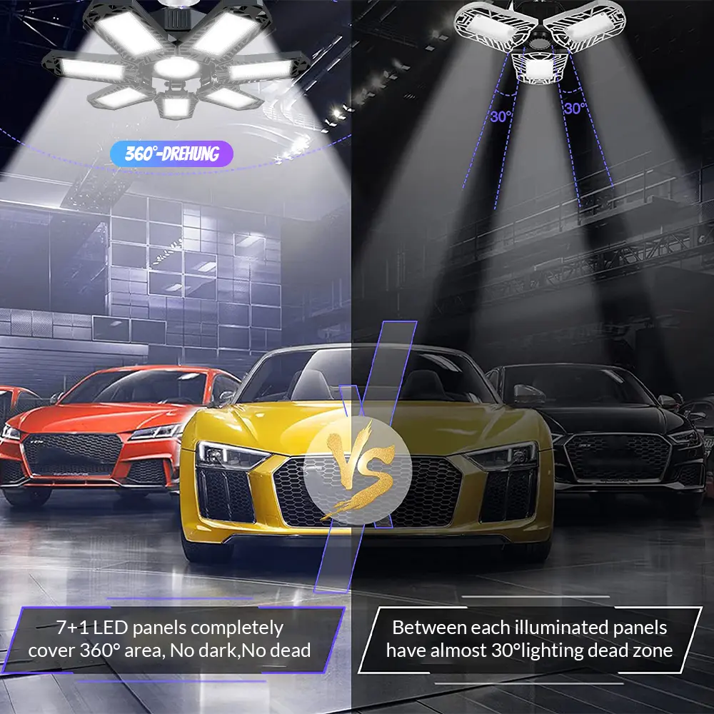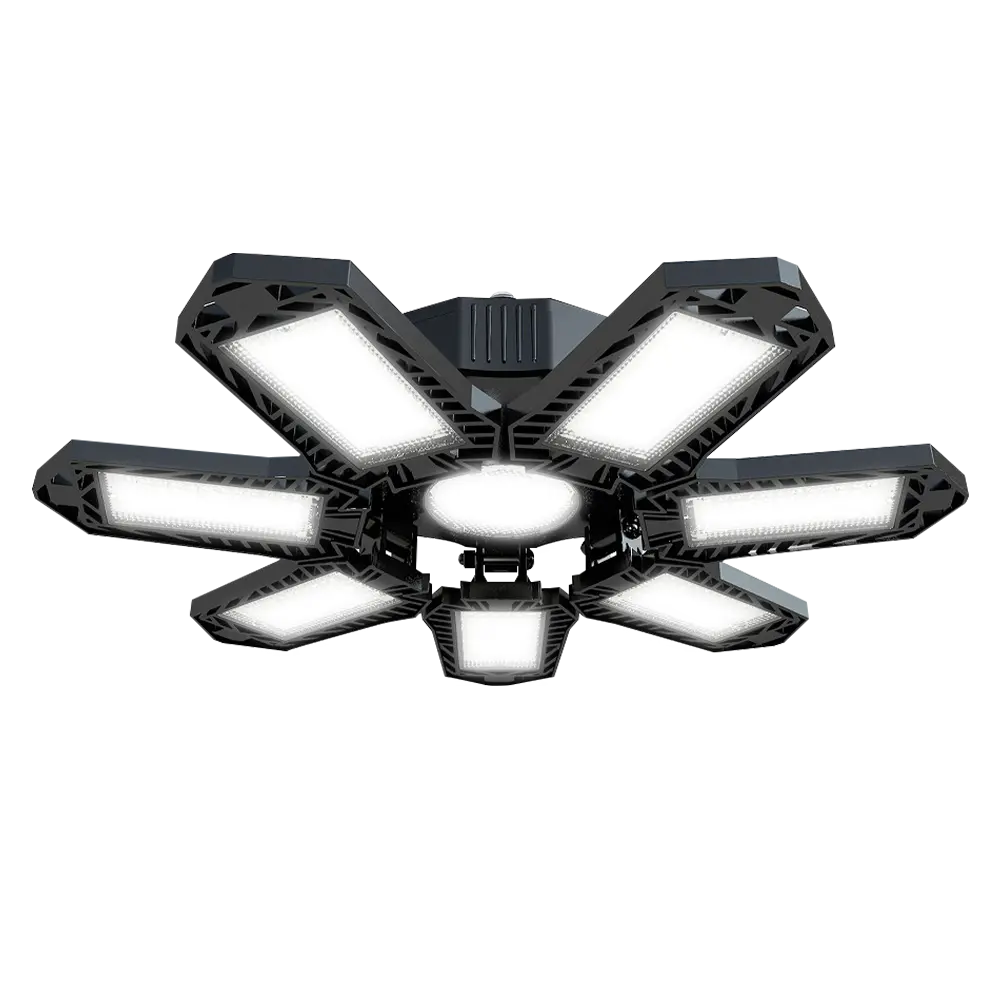 FOLDABLE GARAGE LIGHT 600W Deformable Bright Shop Ceiling Bulb Lamps E26/E27 6500k Barn Warehouse Garage Foldable 7+1 Panel Work Light Super Bright Illumination Easy Installation