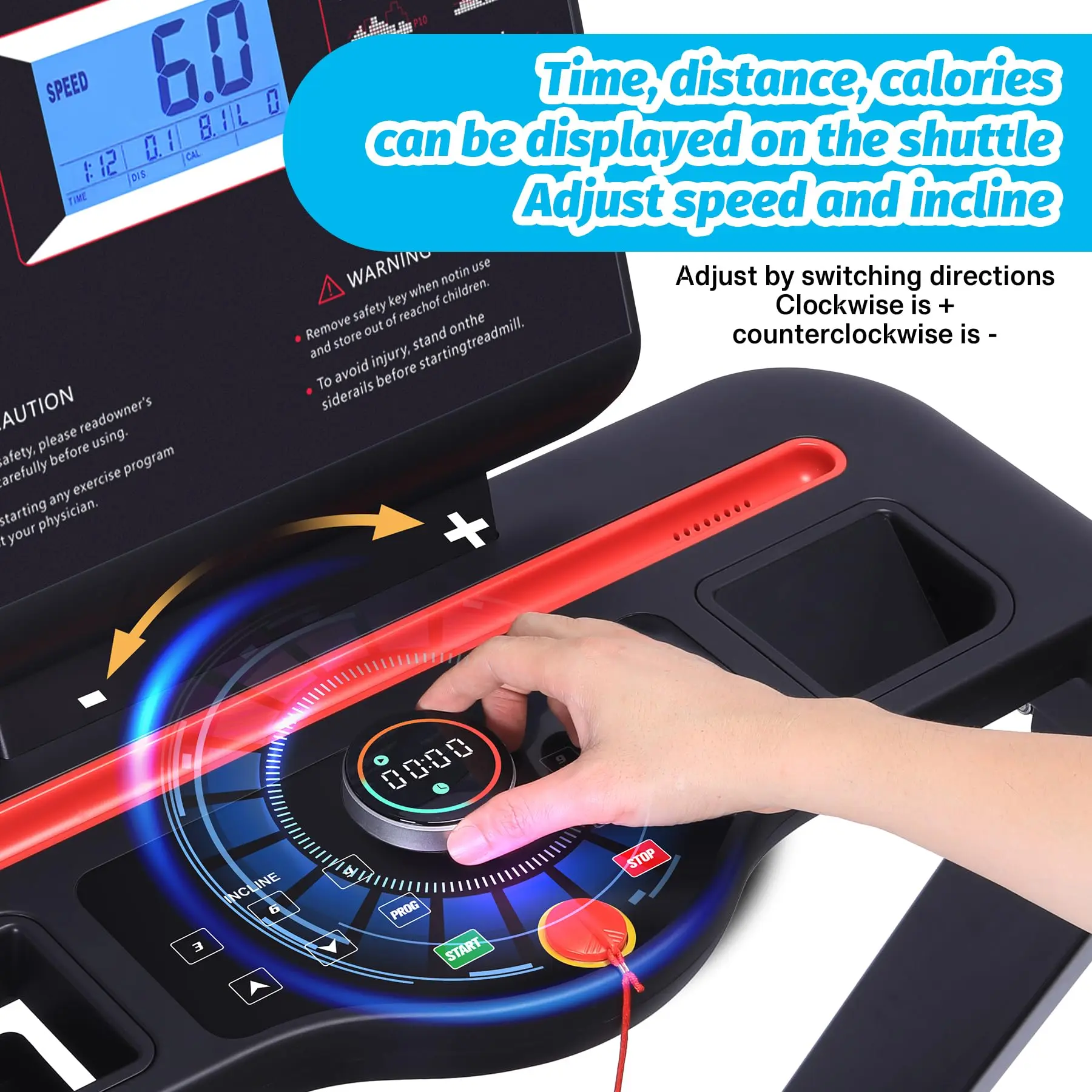 · 【Customizable Incline & Smart Shuttle Control】Reach your fitness goals faster with 15 adjustable incline levels, ranging from 0% to 15%. The intuitive shuttle button lets you track essential metrics like time, distance, and calories burned, while seamlessly adjusting speed and incline for a scientifically guided workout.