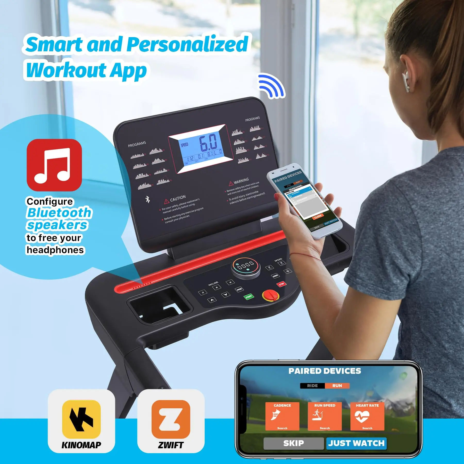 · 【Built-in Bluetooth Speakers for Entertainment】Keep your energy high by streaming your favorite music or podcasts directly through the treadmill’s built-in speakers. Simply connect your smartphone via Bluetooth for hassle-free audio playback during your workout.