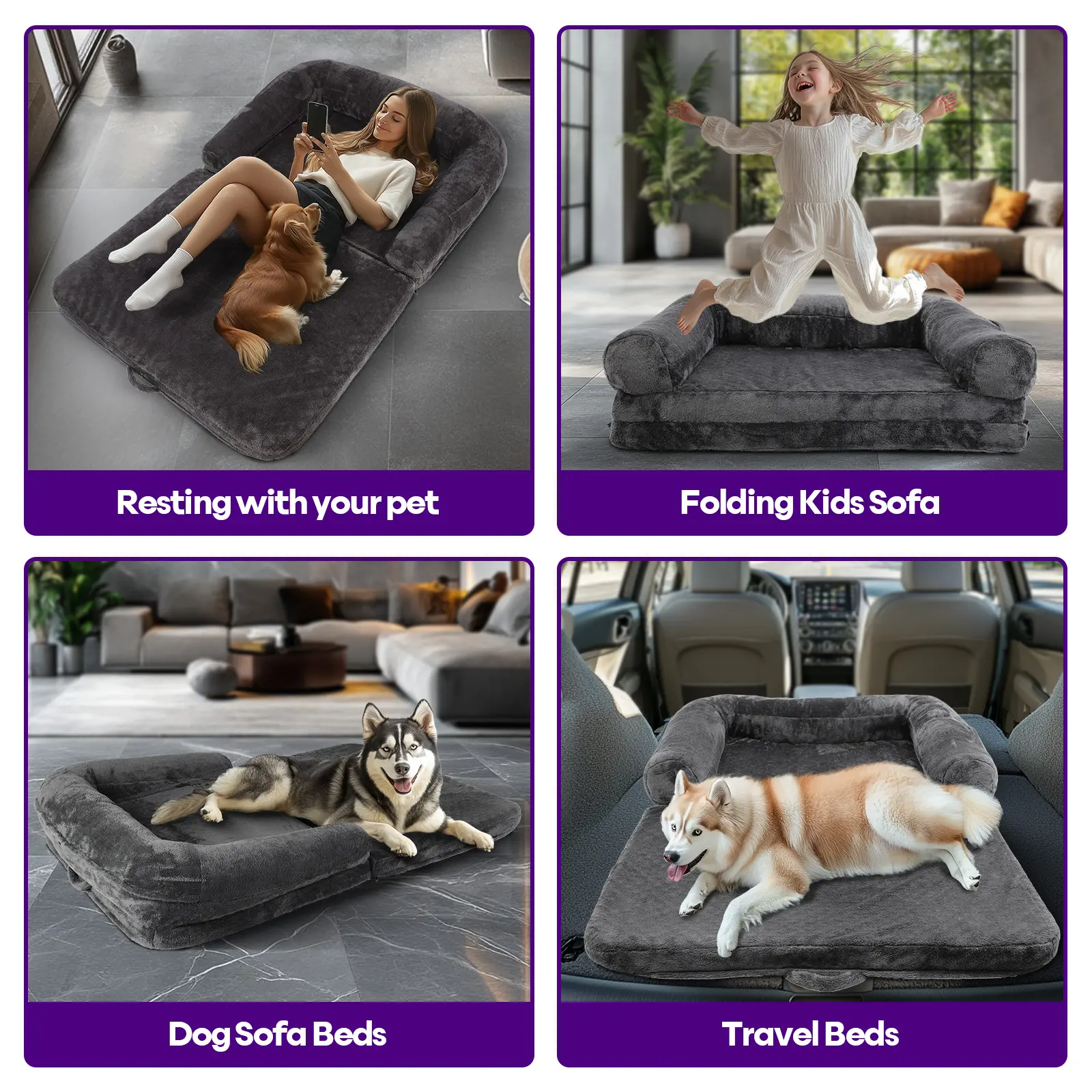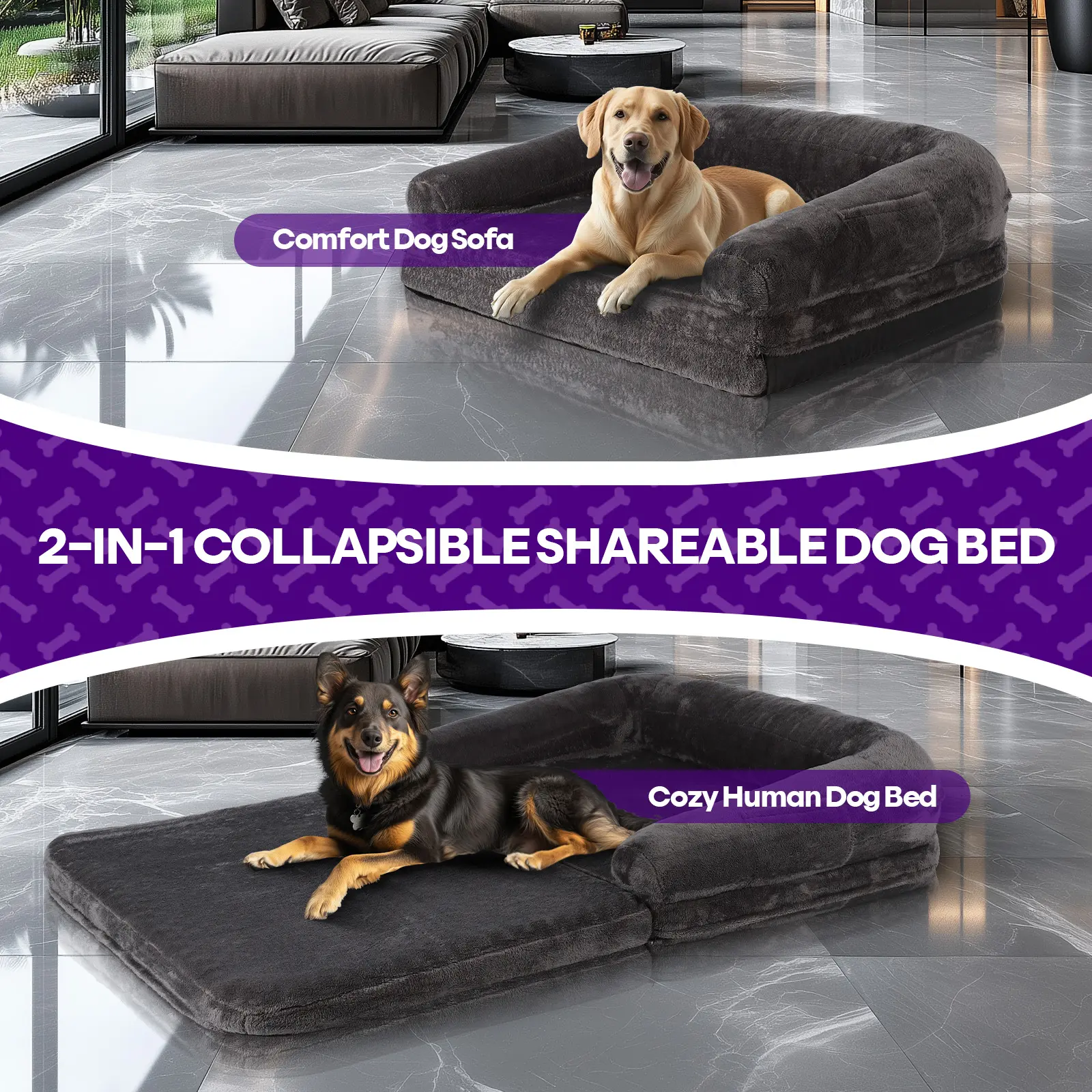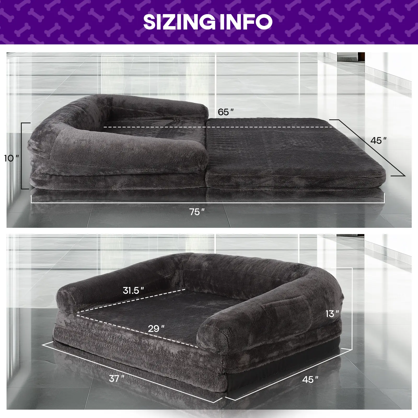 ·FOLDABLE DOG SOFA: This human dog bed folds into a dog sofa. The human dog bed measures 37 “x35.5” when folded and is suitable for large dogs. The unfolded dimensions of the adult dog bed are 75 “x45 ‘x10’.