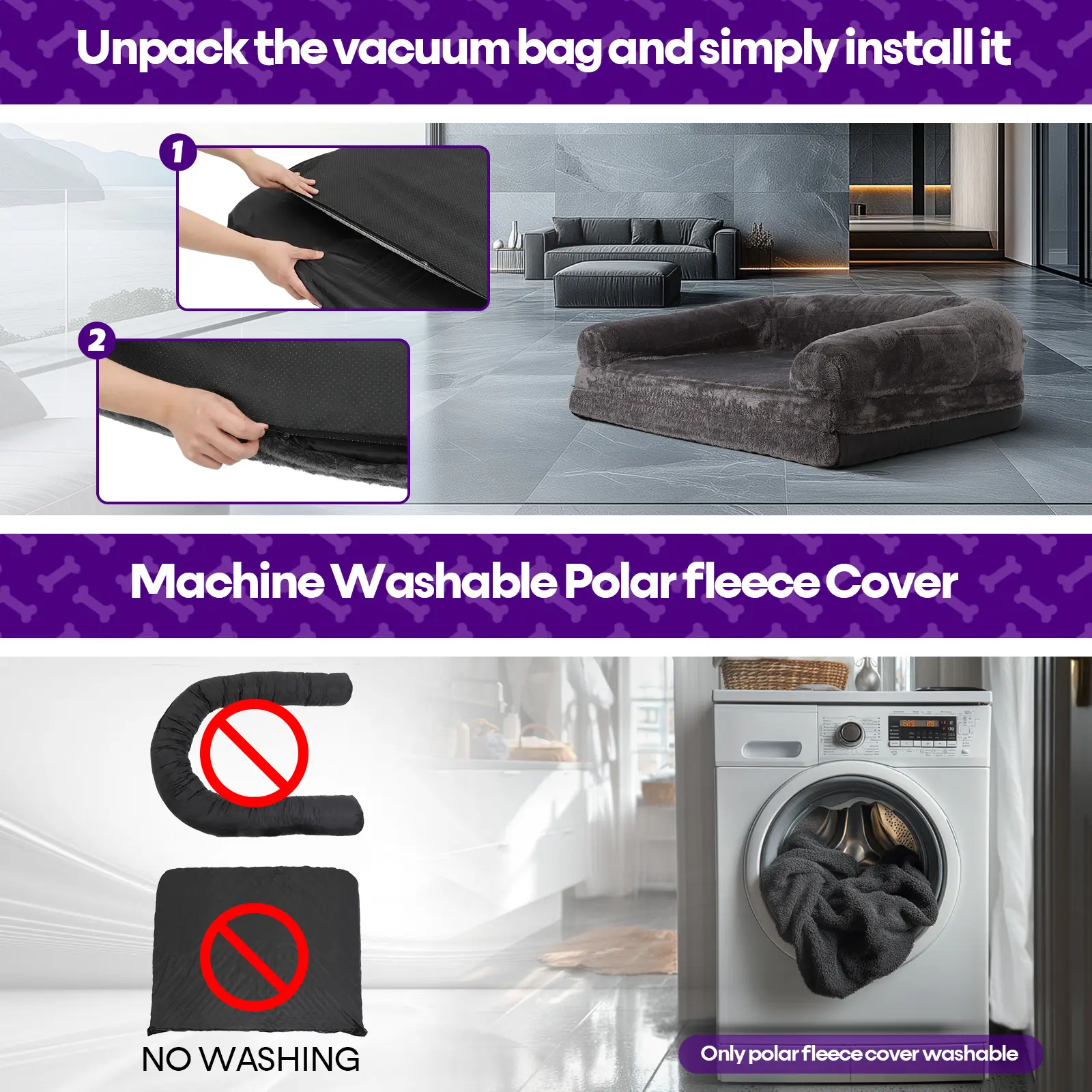 ·EASY TO REMOVE AND CLEAN: The Human Giant Dog Bed requires no installation. Simply unwrap the vacuum bag and wait for it to unfold. Please pat and shake it before use until it is completely fluffed. The faux fur cover can be washed in the washing machine on low temperature. The bolster filling is not washable and should be removed before washing.
