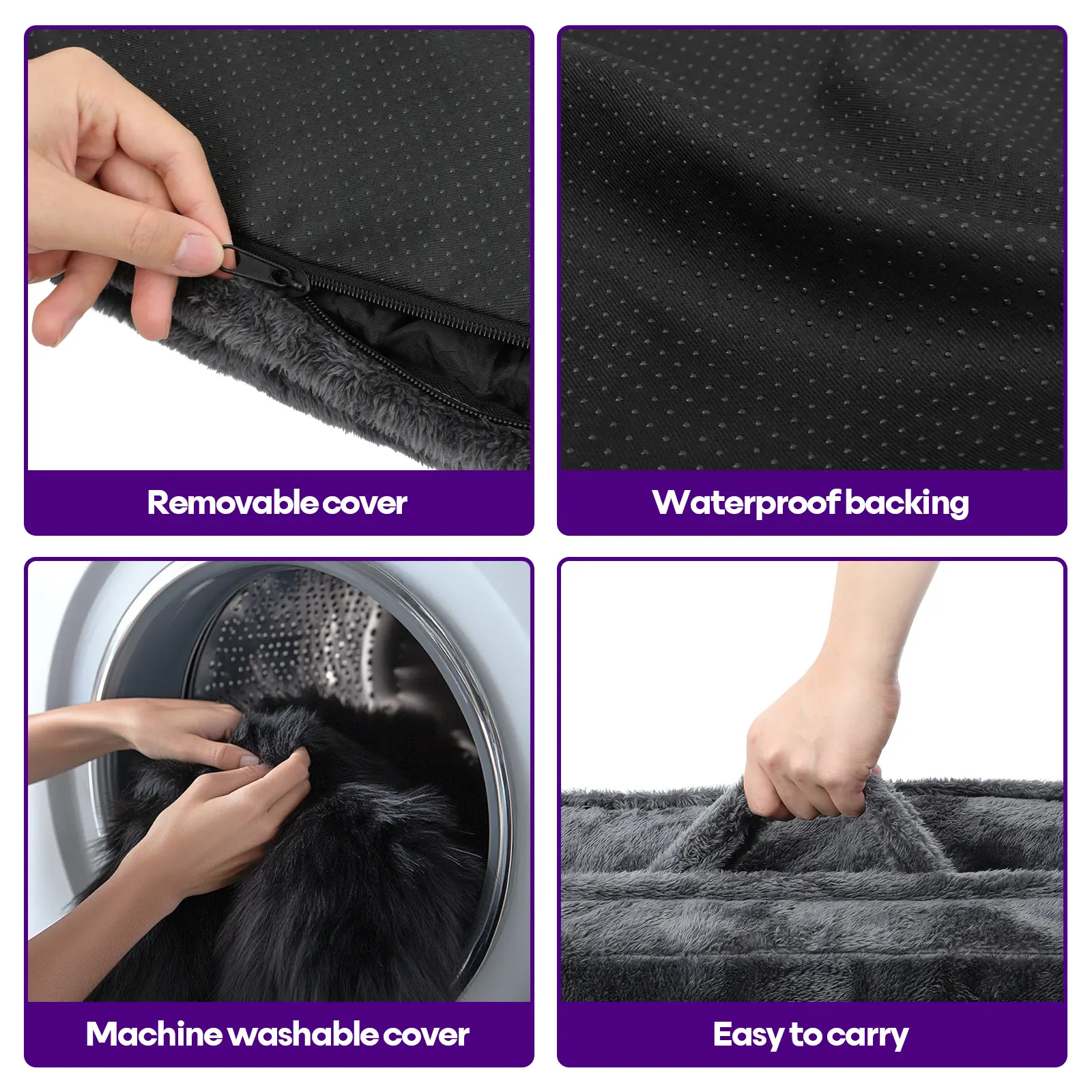 ·COZY AND PORTABLE: The bottom of the dog bed is made of non-slip PVC bottom, and the bed cover is equipped with waterproof layer. There are two storage pockets on the side for easy storage. With carry handles on the front and back, you can easily move it to wherever you want.