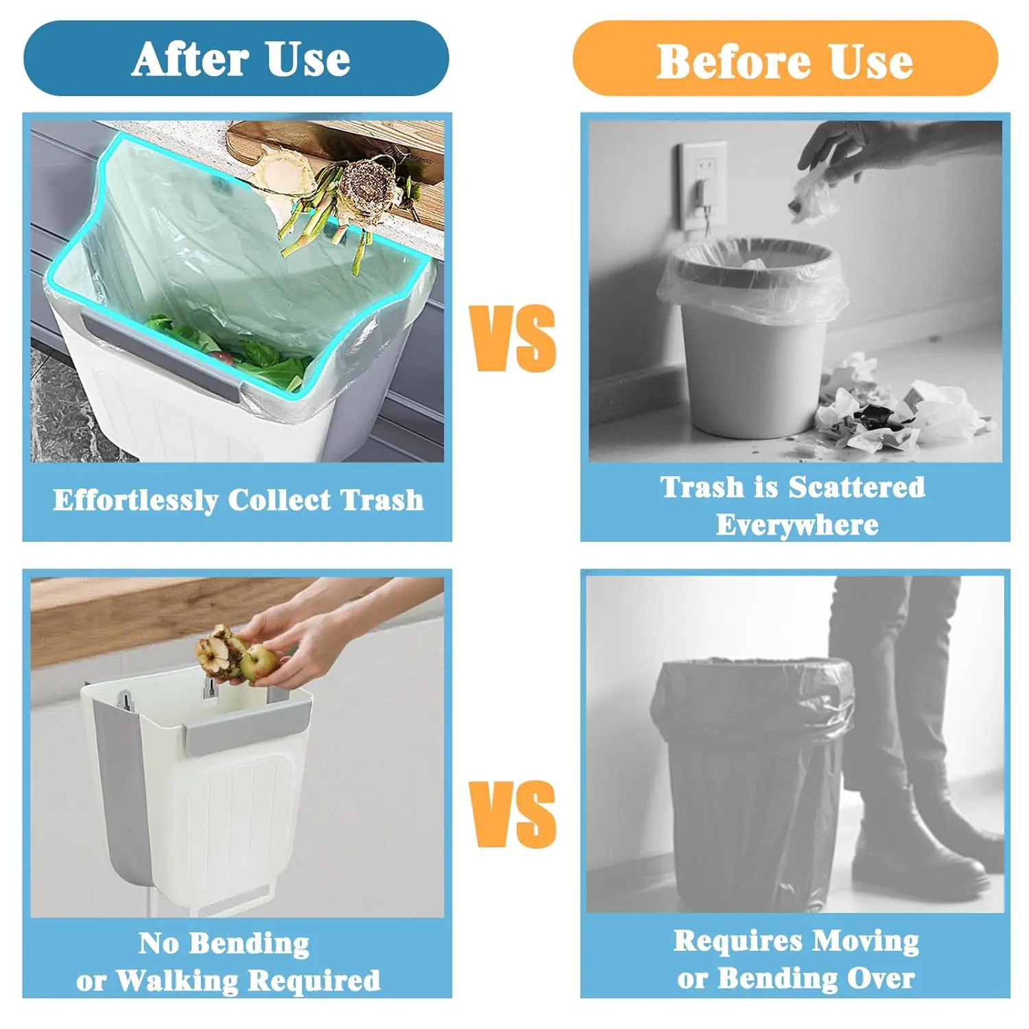 ·Hanging Garbage Storage Bucket: This foldable kitchen trash can is designed for easy hanging, saving valuable kitchen space. 🌟