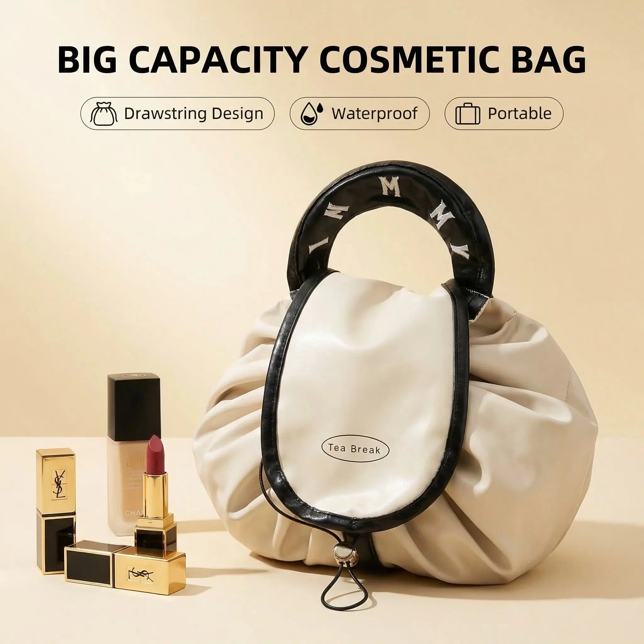 Portable Foldable Makeup Bag with Handle 1 Count Cosmetic Storage Organizer Pouch for Skincare Lotion Lip Balm Eyeliners Brushes Versatile Handheld Storage Bag