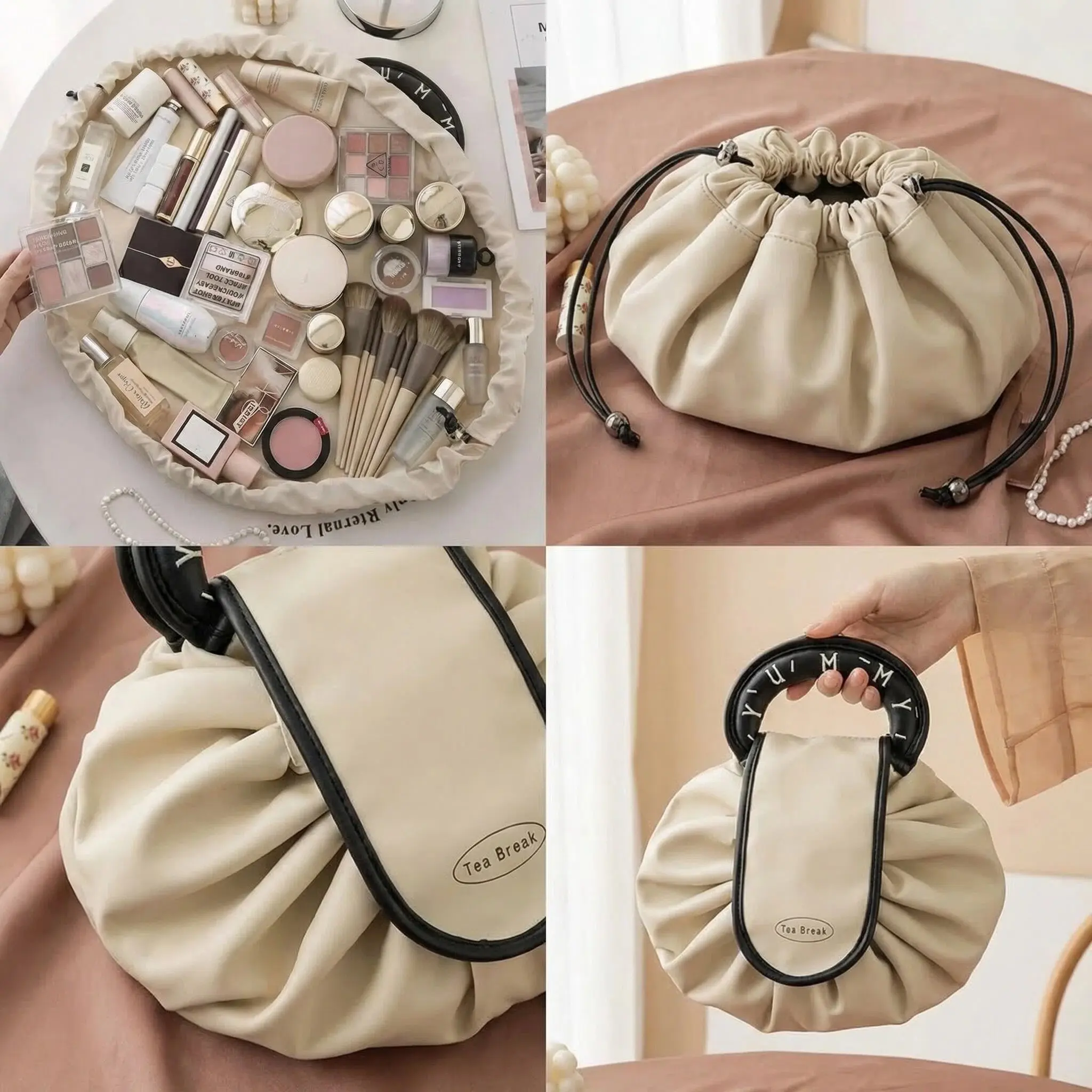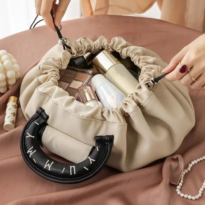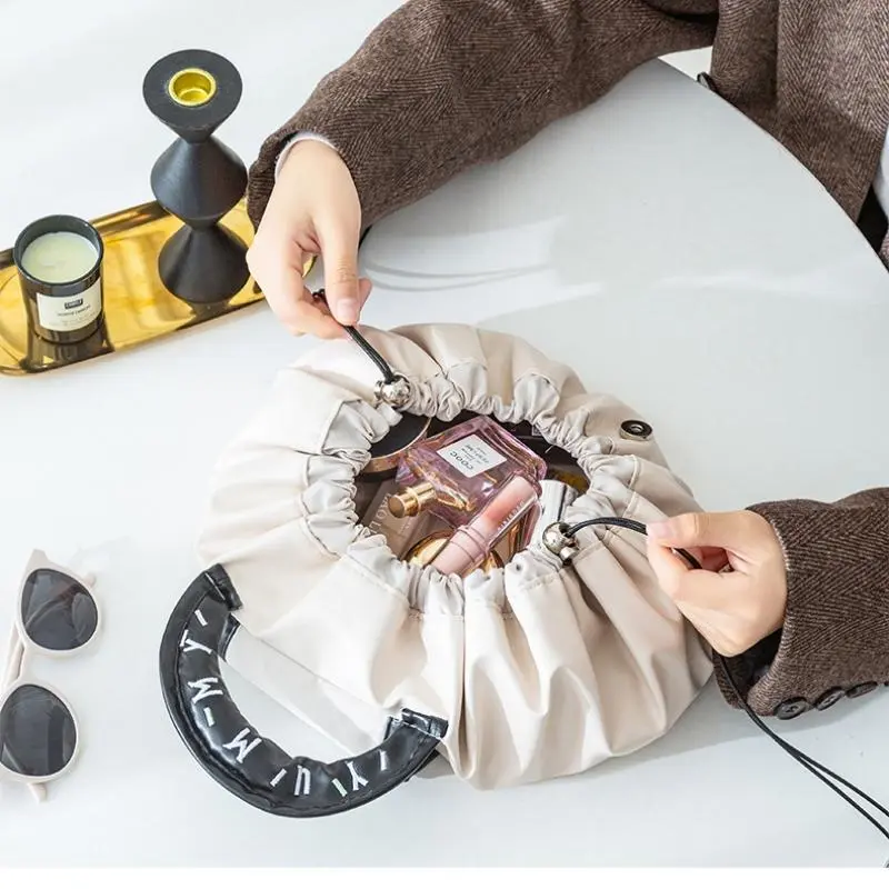[Portable Design]: This makeup bag features a foldable design with a convenient handle for easy transport, maximizing portability.