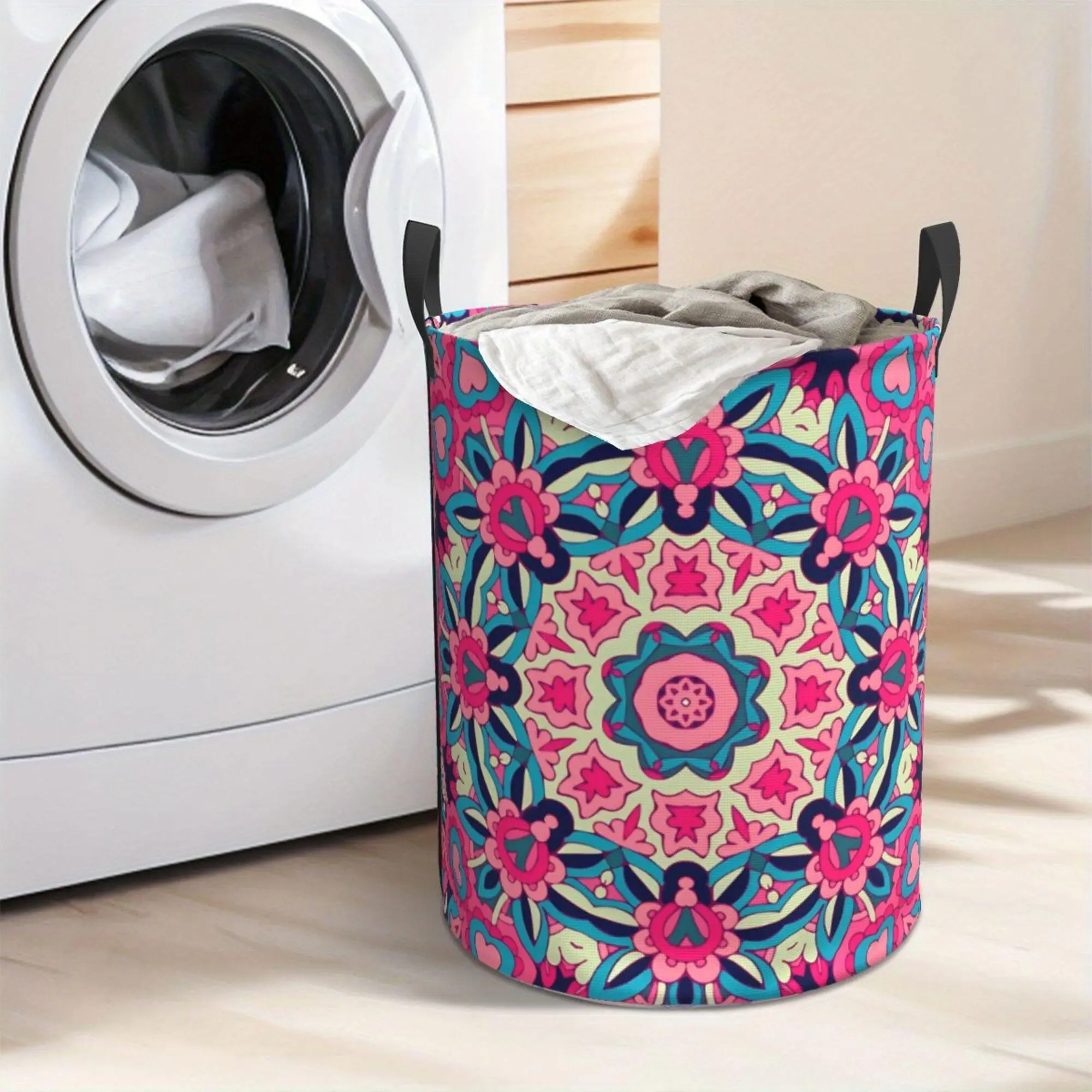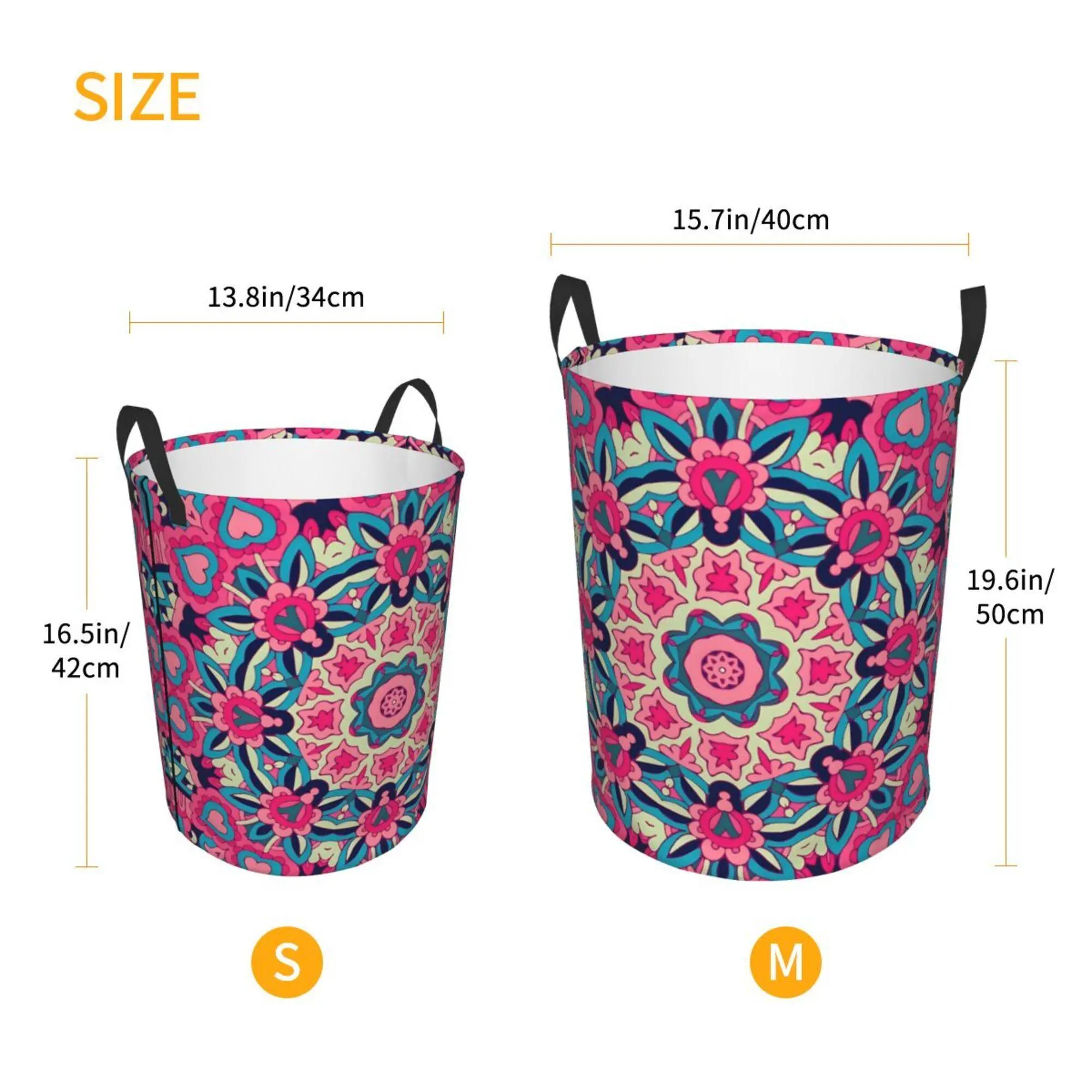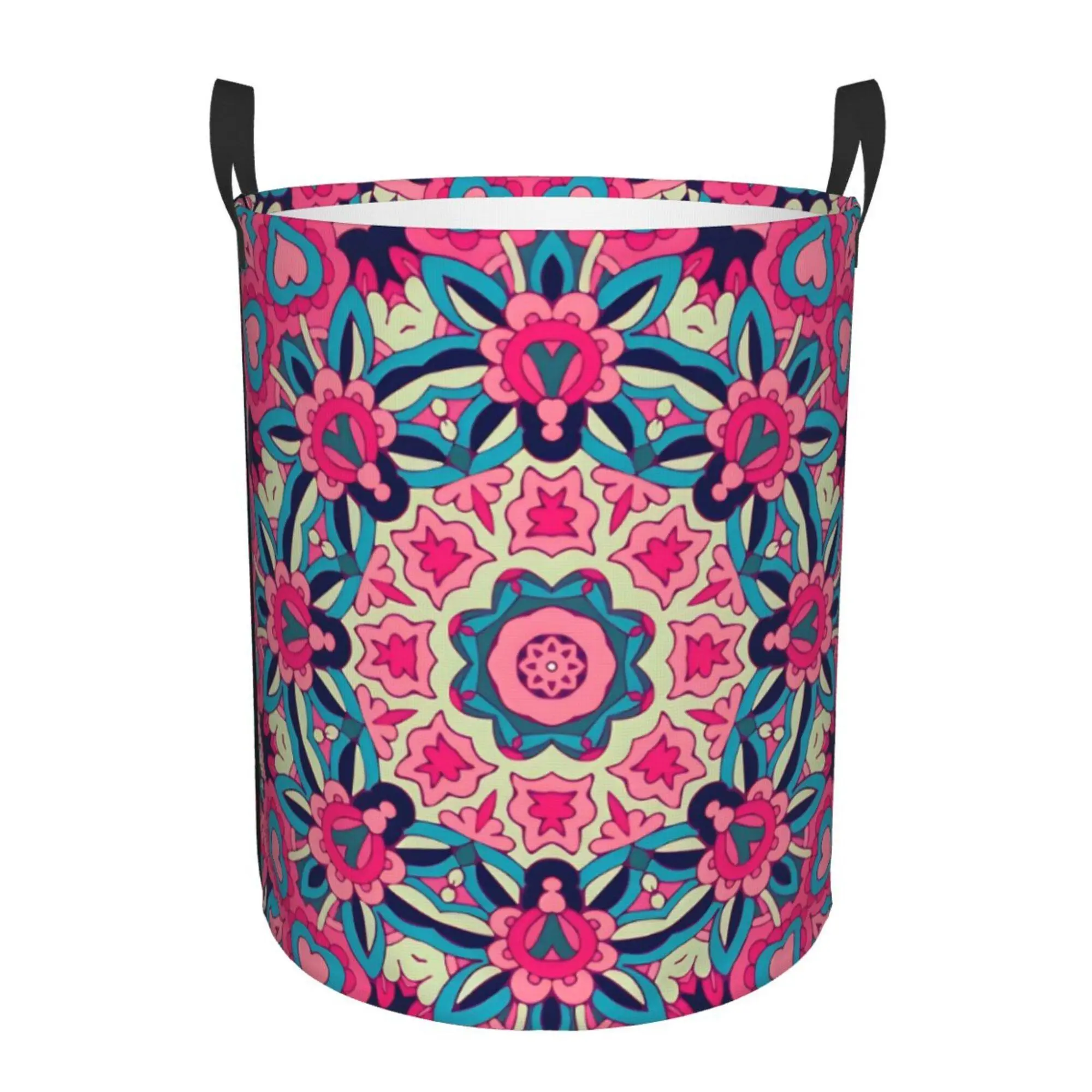 Mandala Laundry Basket Beautiful Flowers Foldable Oxford Cloth Funny Tote Bag Laundry Hamper Clothes Storage Bucket Organizer For Bathroom, Laundry Storage, Bedroom , round Storage Baskets for Clothes and toy, Holiday Gifts for girl ang monthers day
