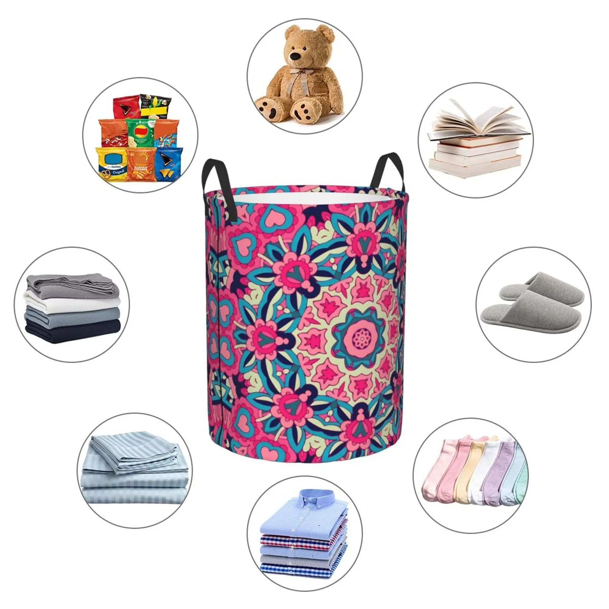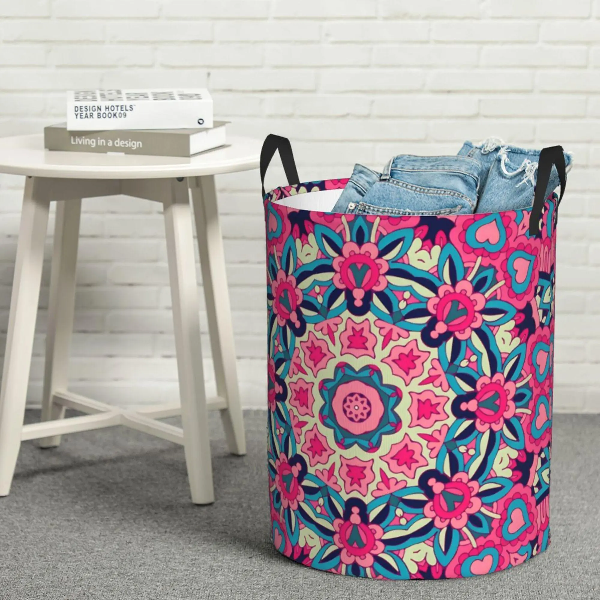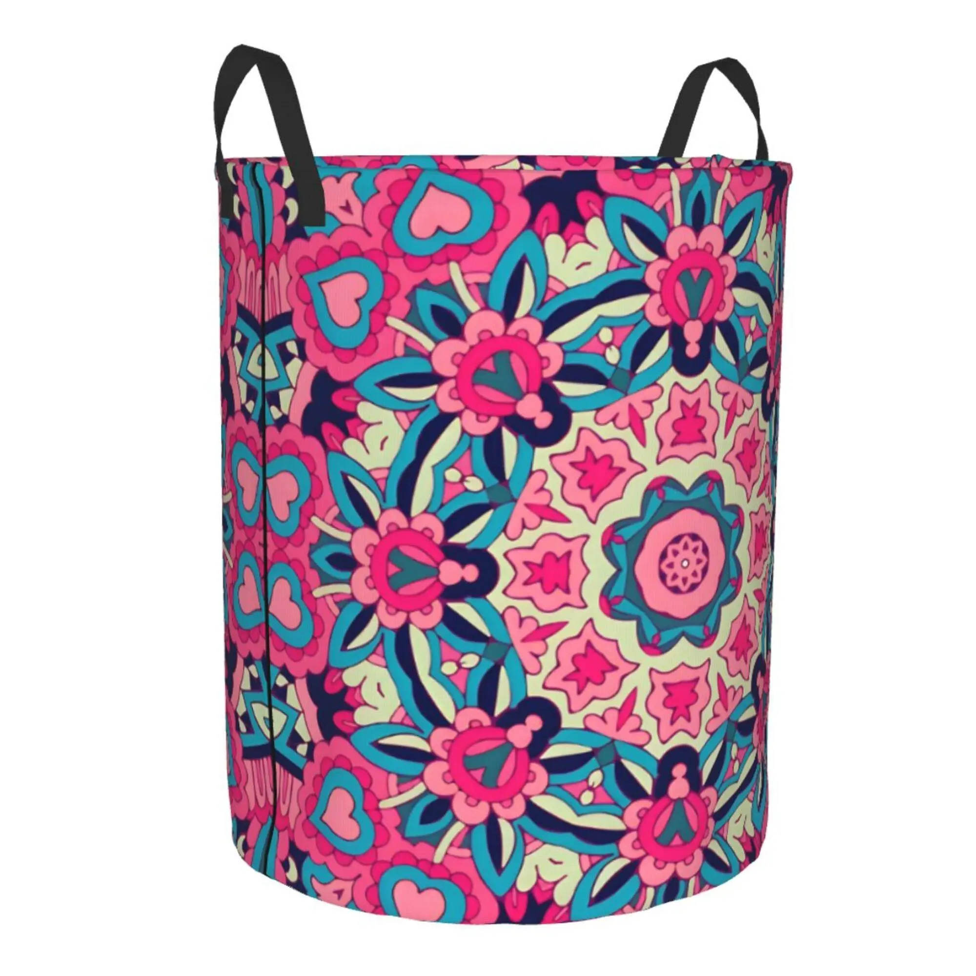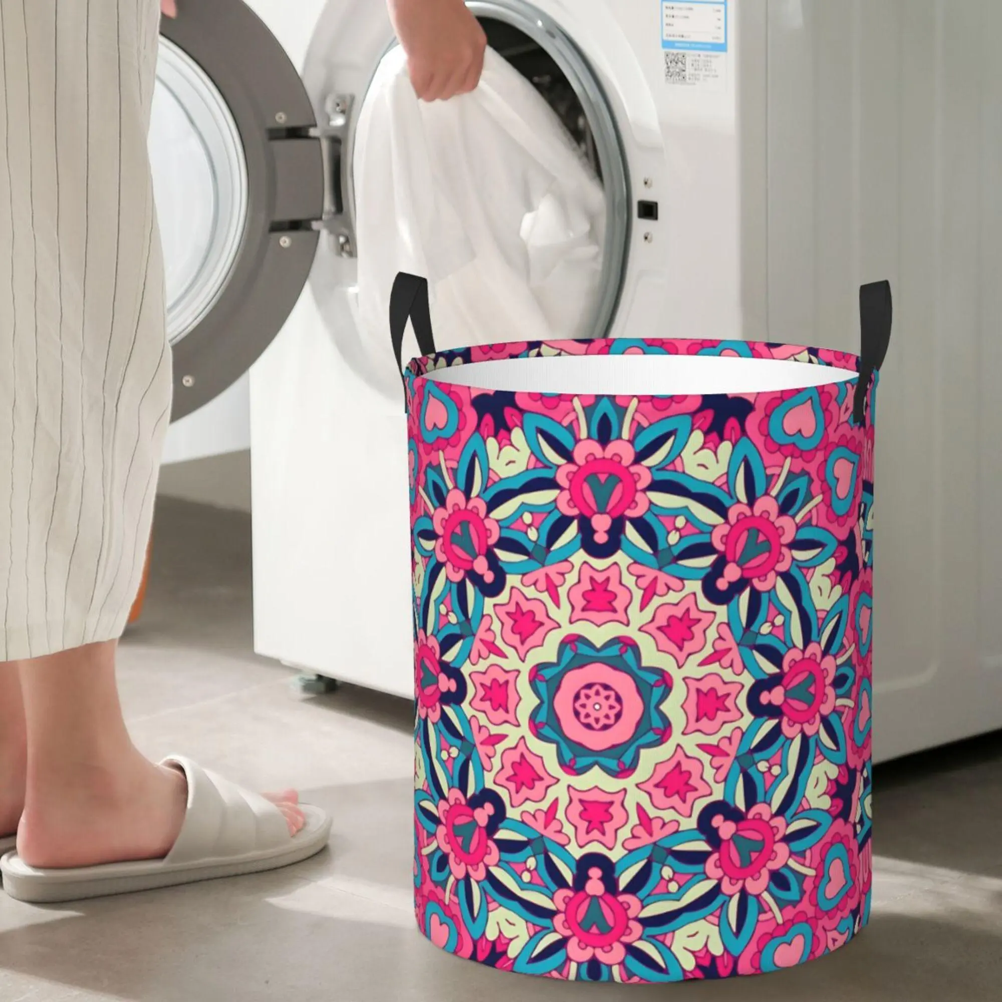 Mandala Laundry Basket Beautiful Flowers Foldable Oxford Cloth Funny Tote Bag Laundry Hamper Clothes Storage Bucket Organizer For Bathroom, Laundry Storage, Bedroom , round Storage Baskets for Clothes and toy, Holiday Gifts for girl ang monthers day