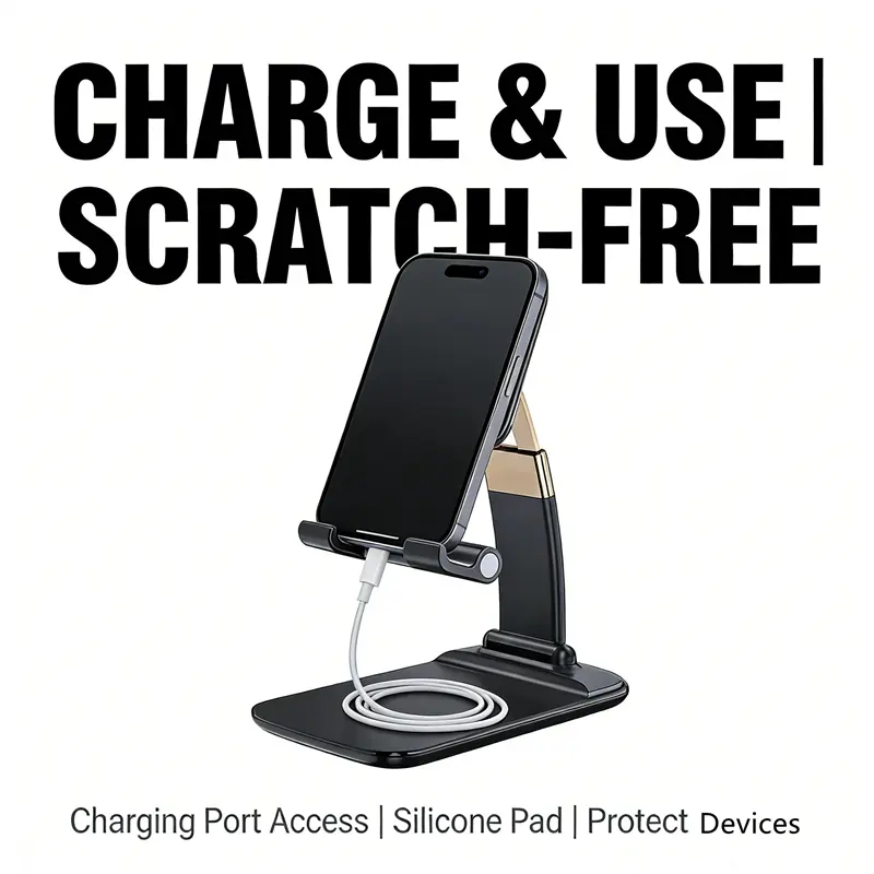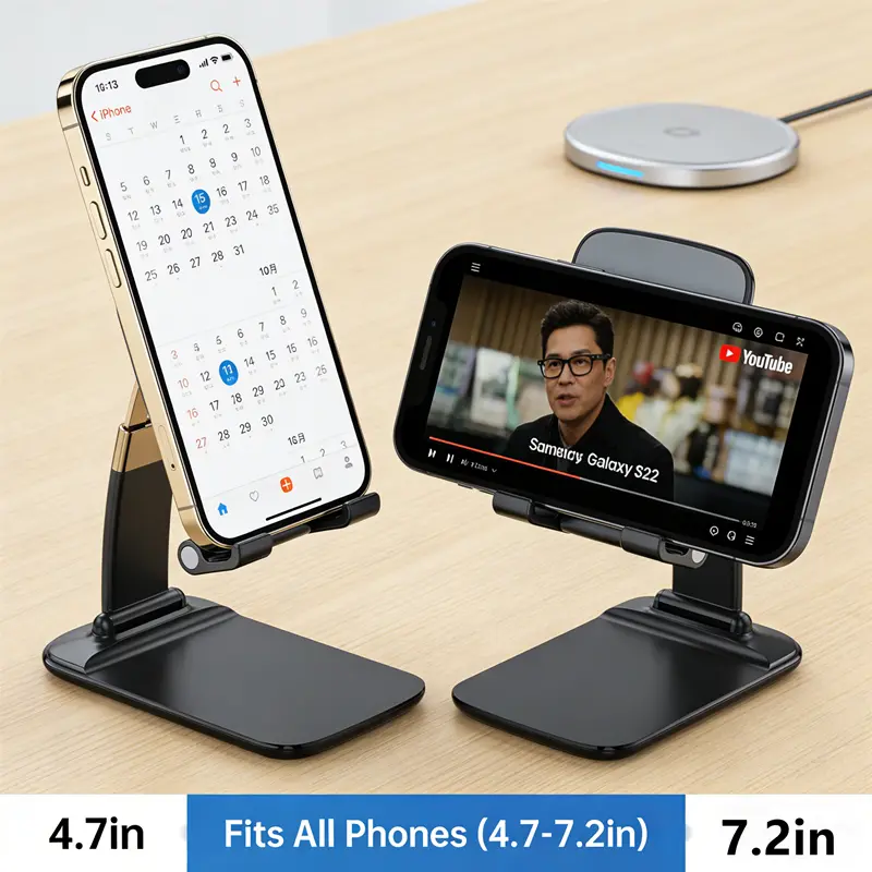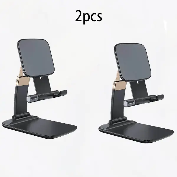 Description:Upgrade your desk setup with our 2-pack foldable adjustable phone stand—the ultimate hands-free solution for work, streaming, and content creation. Designed for stability, portability, and universal compatibility, this set includes two premium stands so you can keep one at home, one at the office, or share with a family member or colleague.Key Features
