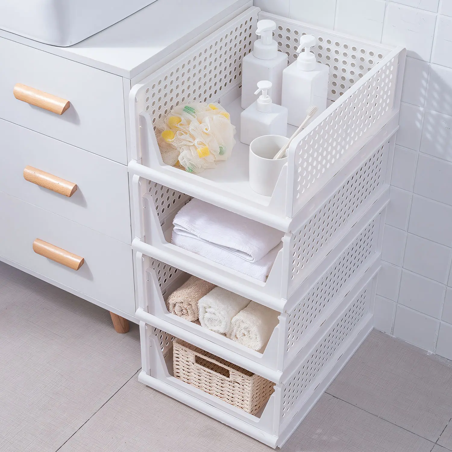 ·Stackable & Foldable: Designed with smooth slide rails on the bottom, you can freely stack multi-layer drawers according to your personal storage demands. And after folding, the thickness of each basket is only 1.57in, will not occupy much space and is convenient for you to store when not in use