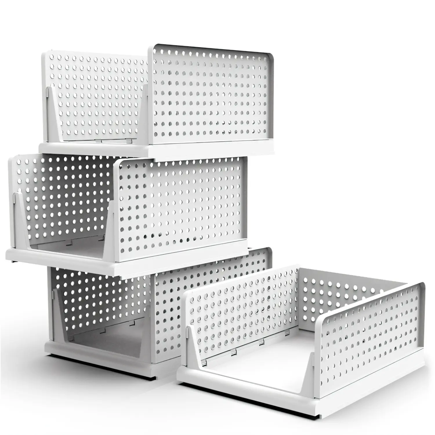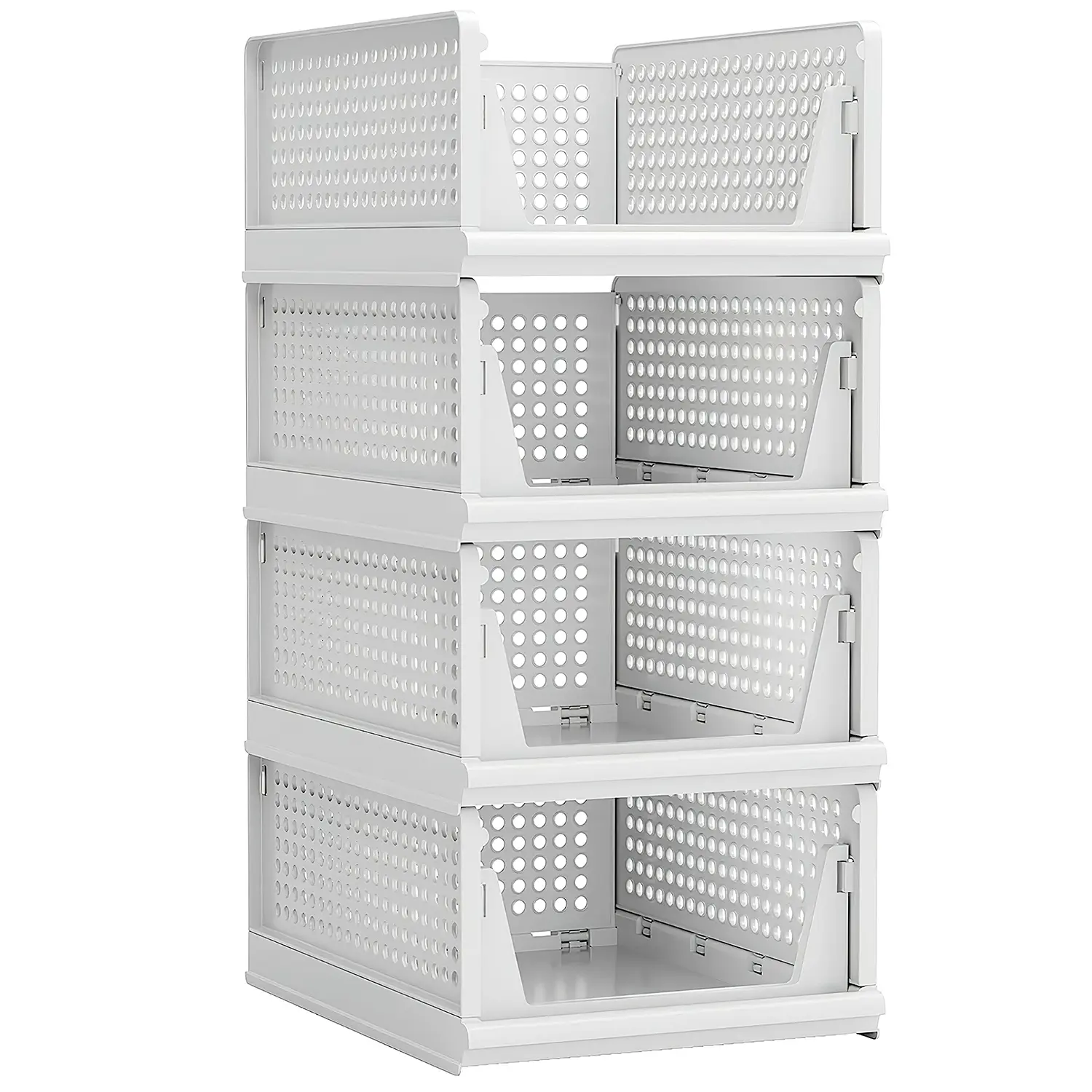 Our closet organizers with convenient buckle design, allow you to quickly assemble 4 boxes within 1 minutes, with no extra tools needed. Equipped with slide rails on the bottom, you can freely stack multi-layer drawers according to your personal storage demands. Foldable white boxes are made of thickened plastic, excellent stability and durability provide better load-bearing ability, won’t easily deform. Suitable for various items’ storage, like shoes, clothes, toys, snacks, seasoning bottles, shampoo. An ideal helper to keep your house neat, tidy and well-organized.