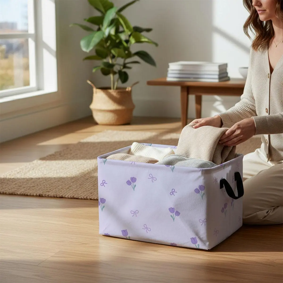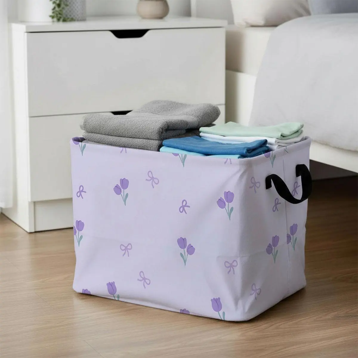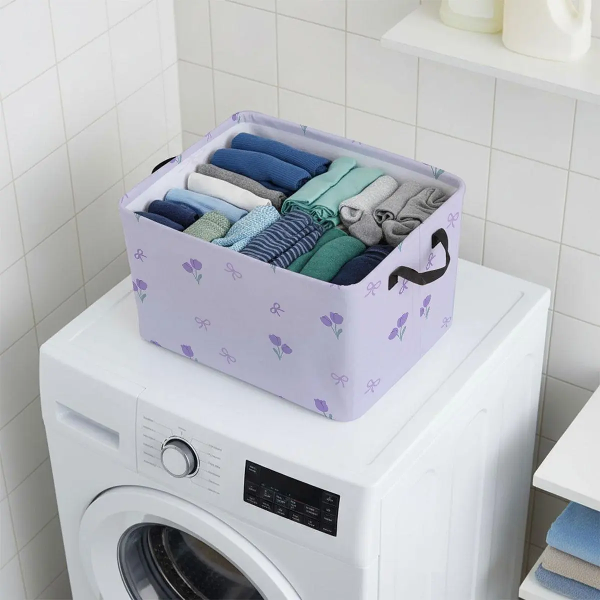 Lavender Floral Bow Pattern Storage Baskets Storage Boxes Home Decor Storage Clothes Organization And Storage Home Decor Storage Holiday Gifts, Shelf Baskets, Organizer for, Toys, Books, Pet Lovers Home Decor, Playful Design, Laundry Basket