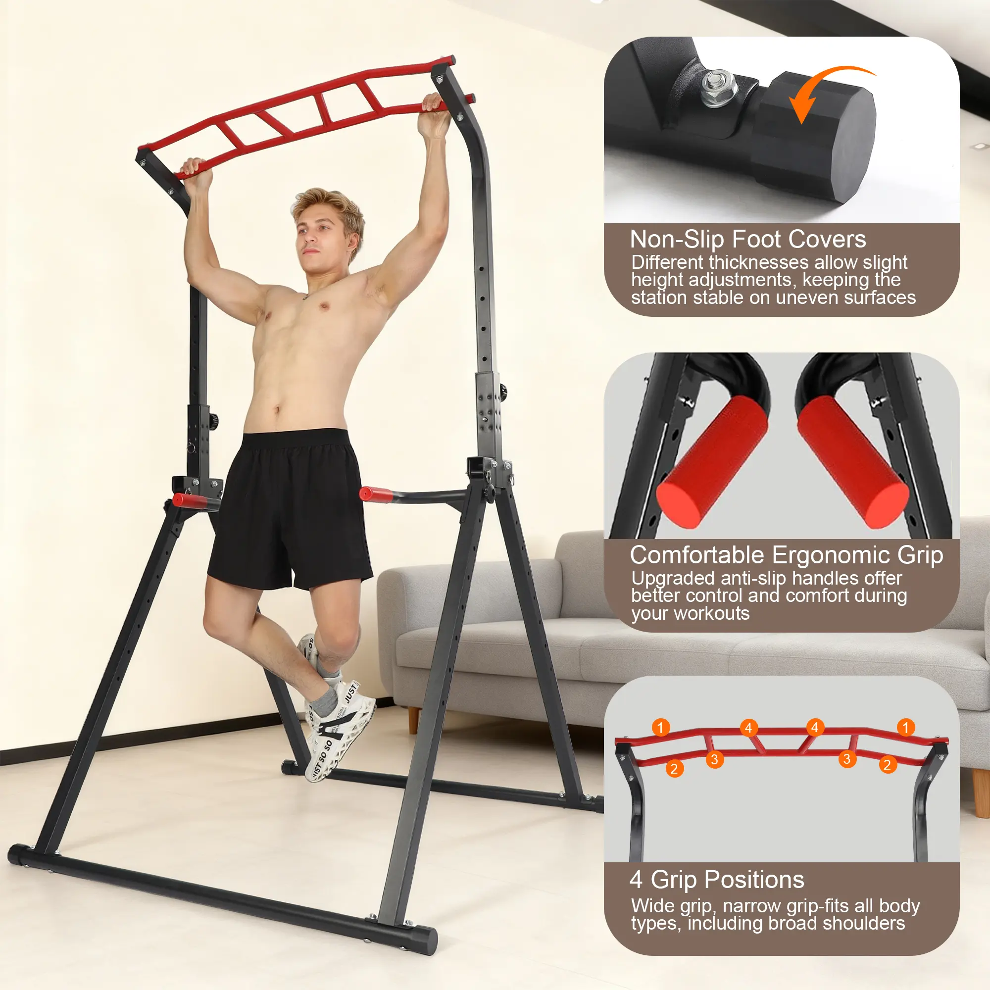 JointlyCreating Foldable Power Tower Pull Up Bar Dip Station Adjustable Multifunction Workout Pull Up Tower Station Gym Back Strength Training Equipment for Home Outdoor Triangular Legs Support 500lbs