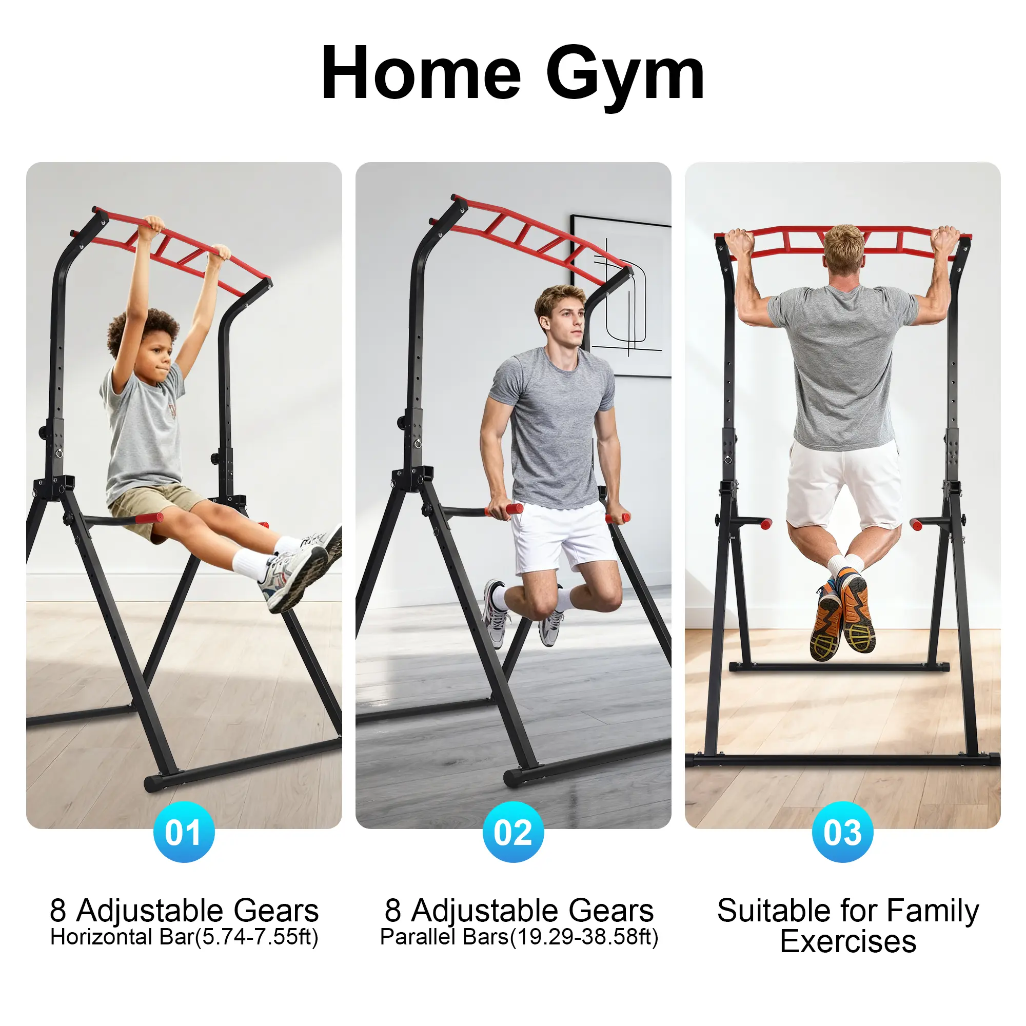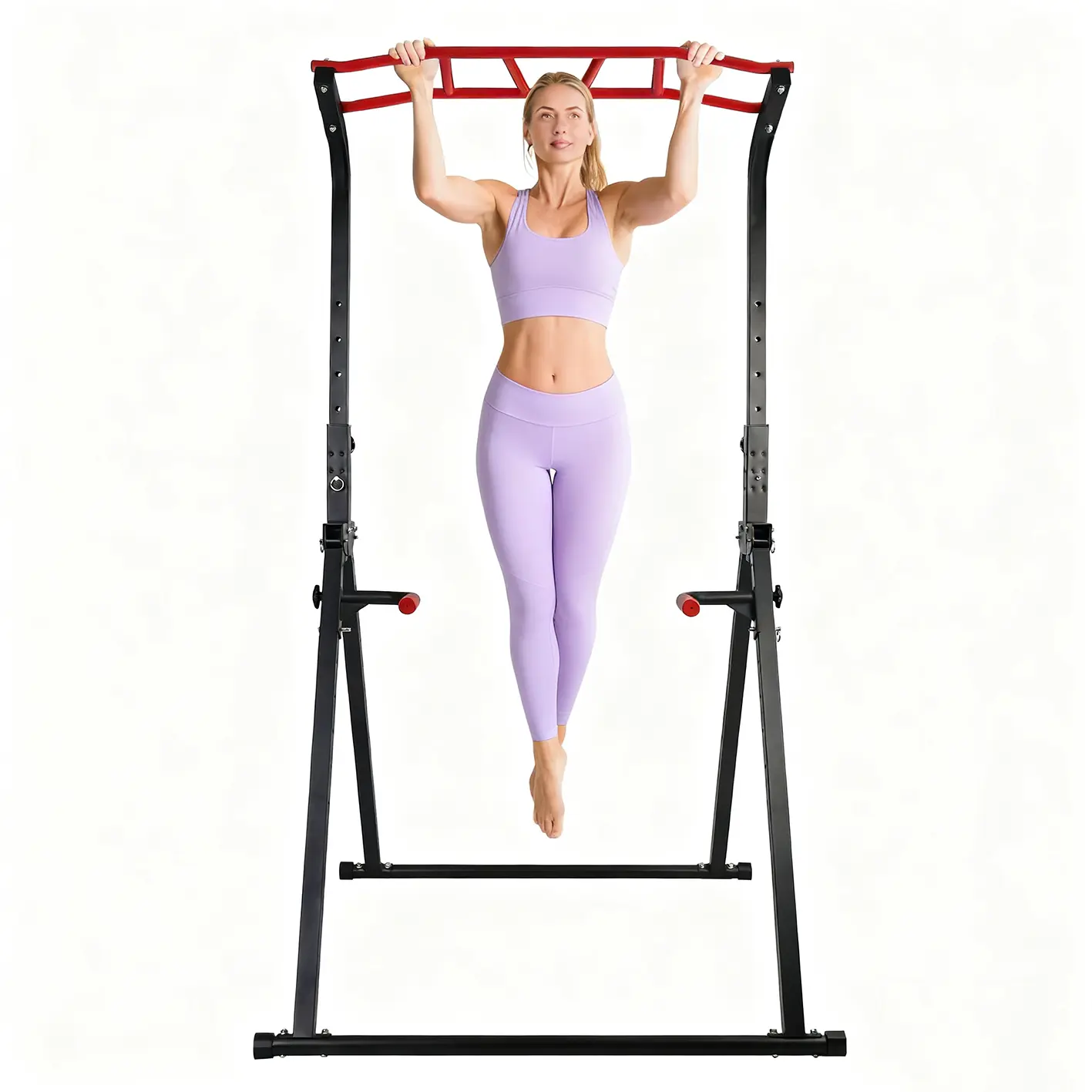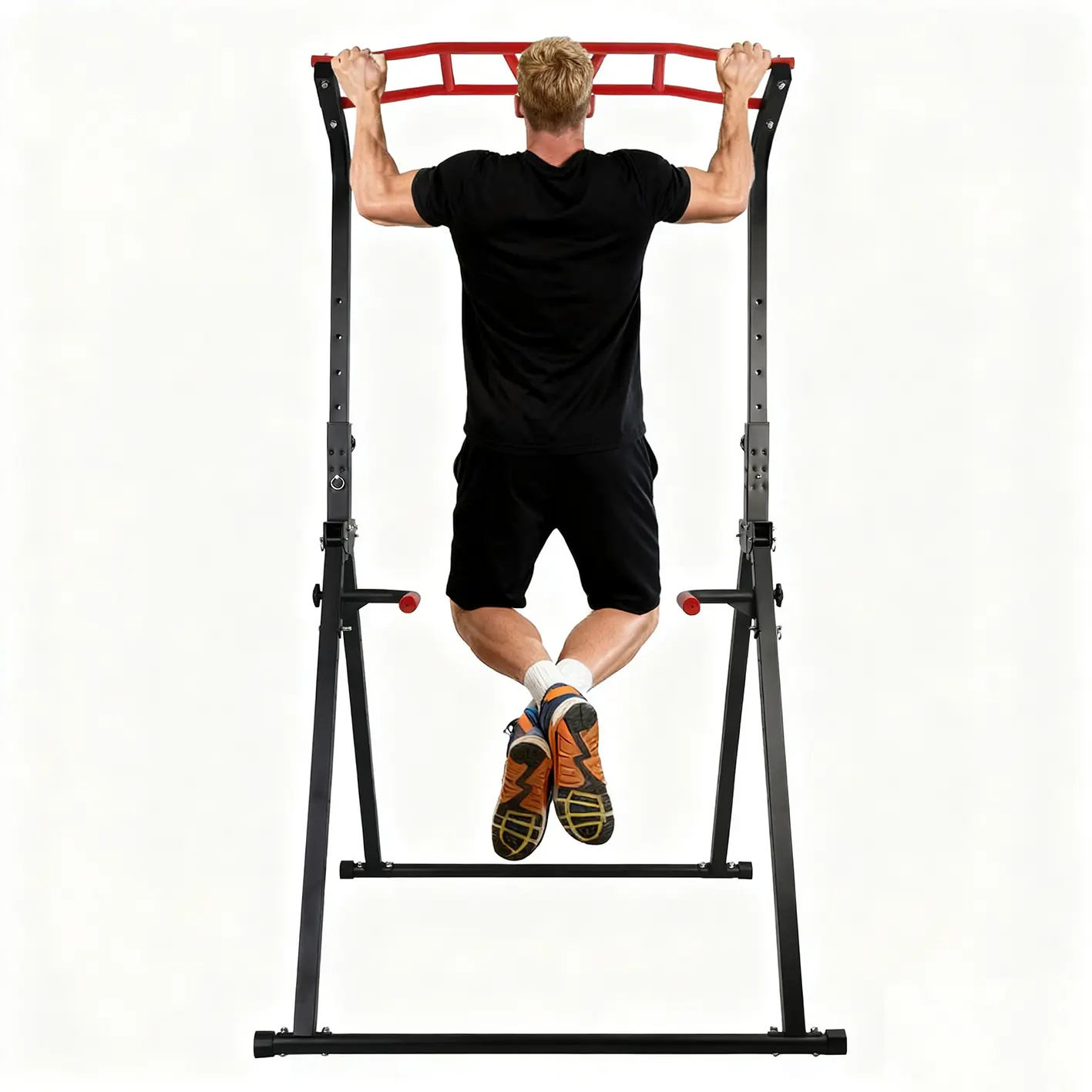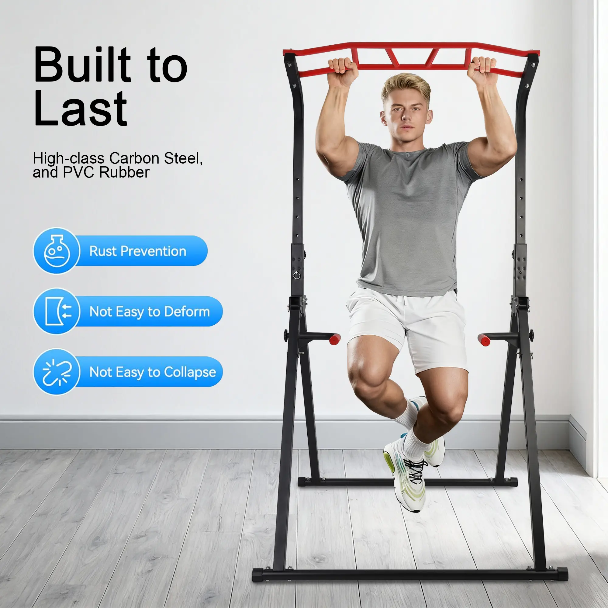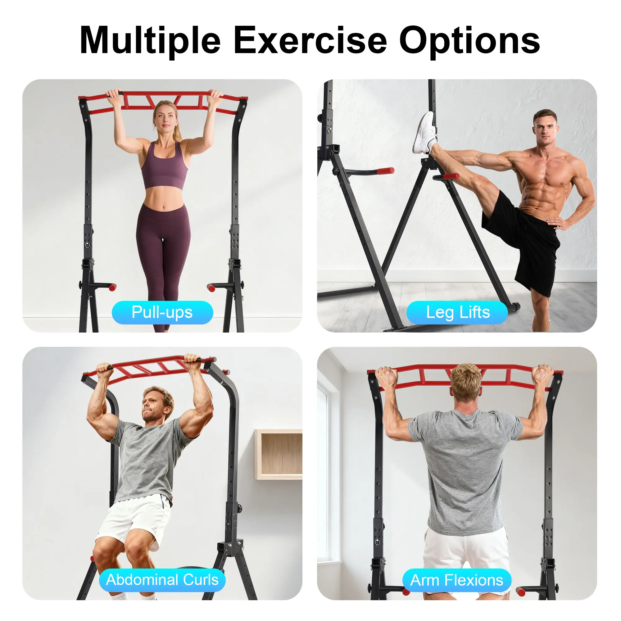 Build strength and endurance from the comfort of your home with this Foldable Power Tower Pull Up & Dip Station. Designed with a sturdy triangular base and adjustable height levels, it supports multiple workout styles including pull-ups, dips, push-ups, and leg raises. The multifunction power rack offers a complete full-body training solution for both upper and lower body exercises.