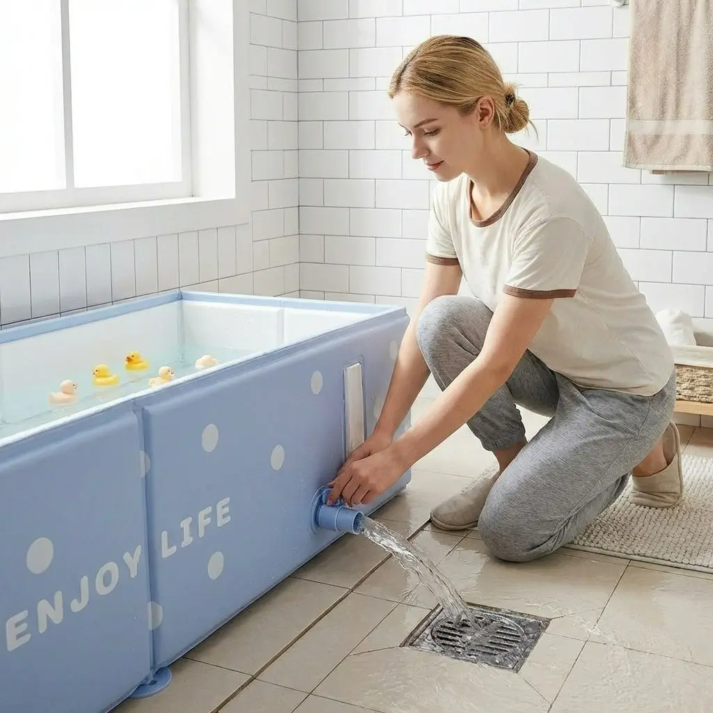 Foldable Rectangular Bathtub, Portable Freestanding Bath Tub, Space Saving Spa Bucket for Travel & Home, Multiuse Collapsible Bath Basin, Ideal for Outdoor & Festival Gift