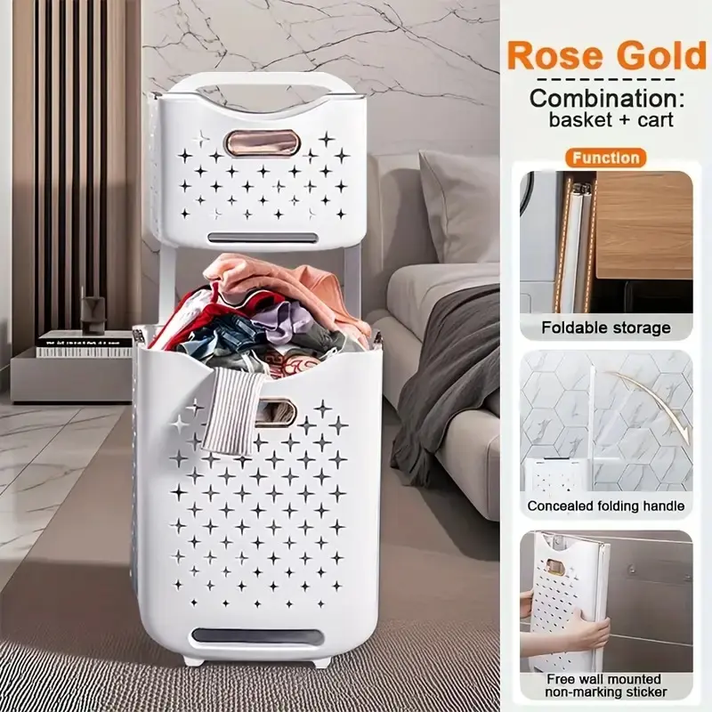 Foldable Laundry Basket with Dual Compartments and Wheels