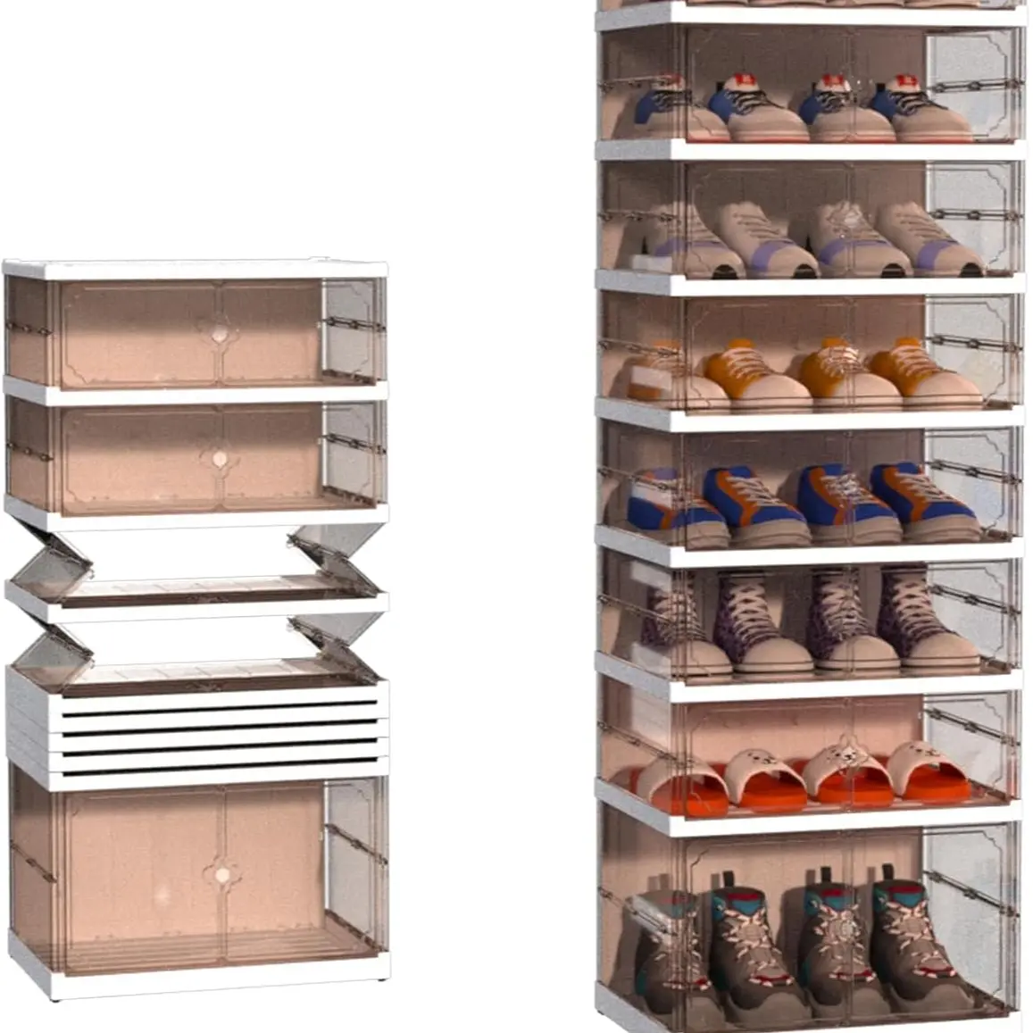 ·【Versatile Storage Solution】This foldable shoe shelf is not just for shoes; it's a multifunctional organizer perfect for toys, clothing, medical supplies, snacks, collectibles, and more. Transform your entryway or home with this adaptable shoe cabinet with doors/lids for all your storage needs.