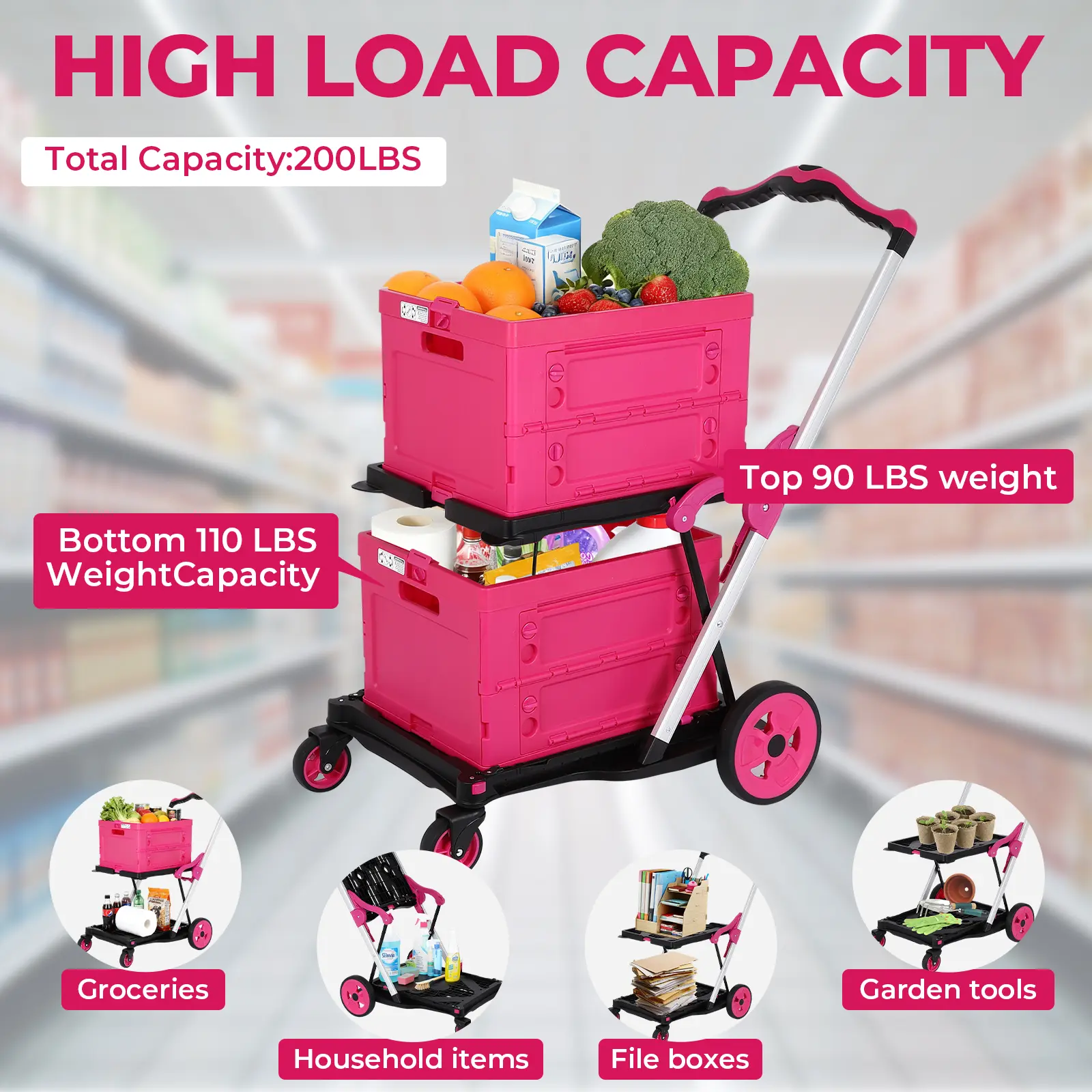 ·HEAVY LOADING CAPACITY: The collapsible cart can hold up to 200 pounds, making it ideal for shopping, moving and outdoor activities. It is made of sturdy materials to ensure durability, lightweight construction and smooth propulsion.