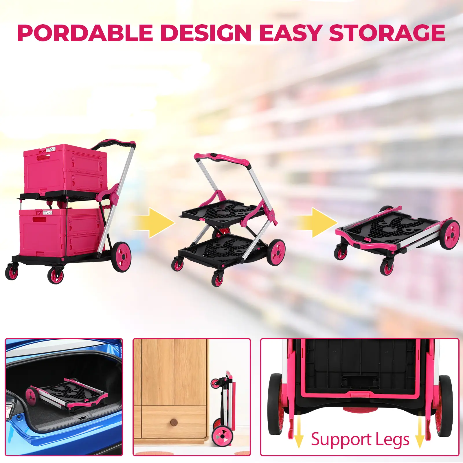 ·Foldable AND SPACE-SAVING: The Collapsible Trolley is a lightweight, space-saving transportation tool. It is made of sturdy materials, can carry heavier items, can be quickly unfolded when in use, and can be folded into a compact shape for easy storage when not in use