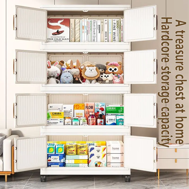 Foldable Snack Storage Rack, Multi-Layer Toy Organizer, Home Kitchen Cabinet, Living Room Display Shelf, Space-Saving Design, Organizing