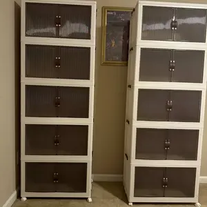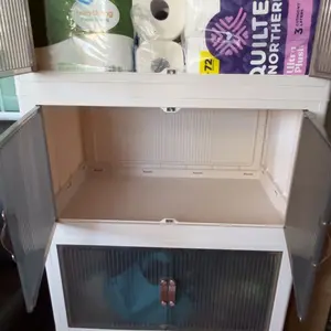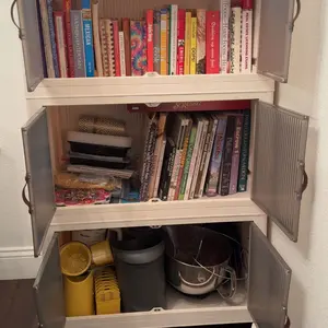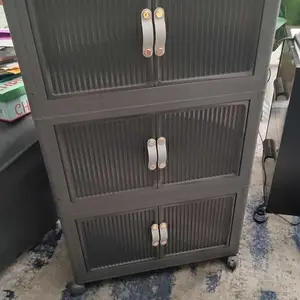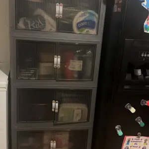 I love this Everything is organized in there and I love the doors to hide things away. They interlock great and the wheels make it easy to sweep and mop.Going to buy another set. Super neat and organized.👍❤️