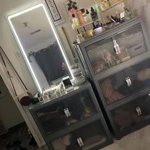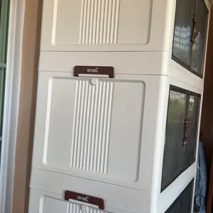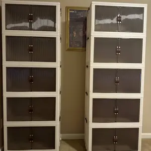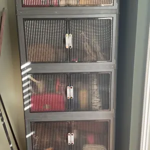 I purchased two extra large 5 stacks. I placed 4 in my garage for shoes, a stack of 3 in my kitchen, area, and 3 are going in my closet to store my purses. They store a lot of items and they hold the weight. I wish the doors were acrylic and not plastic, but cute nonetheless.