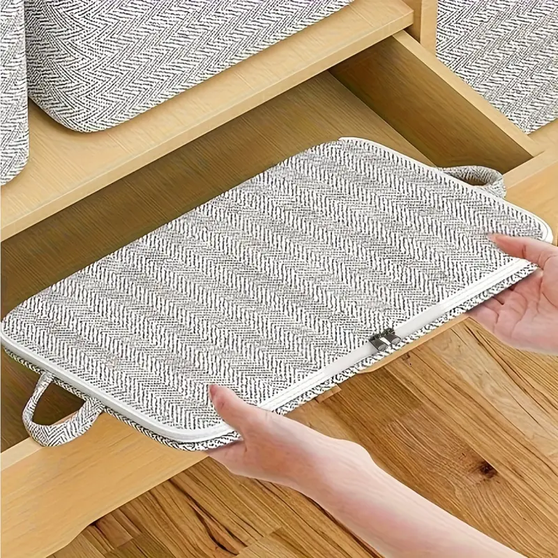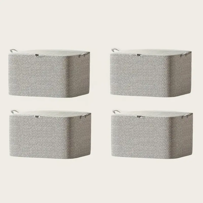 4 Pack Foldable Fabric Storage Bins with Lid Stackable Closet Organizers for Under Bed Wardrobe Moving Space Saving Rectangular Large Capacity Beige High Capacity Storage