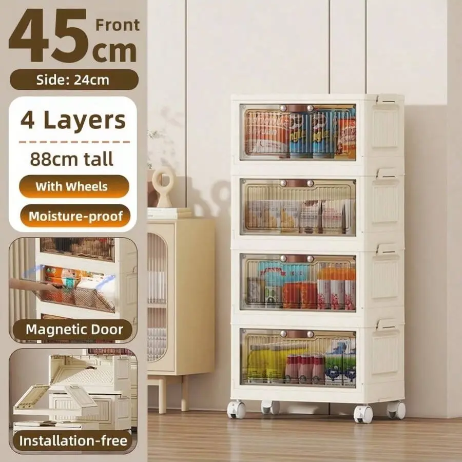 Quick assembly in minutes; folds flat for compact storage in gaps or under beds. 4/5/6 tiers available, fits bedrooms, kitchens, bathrooms, etc.