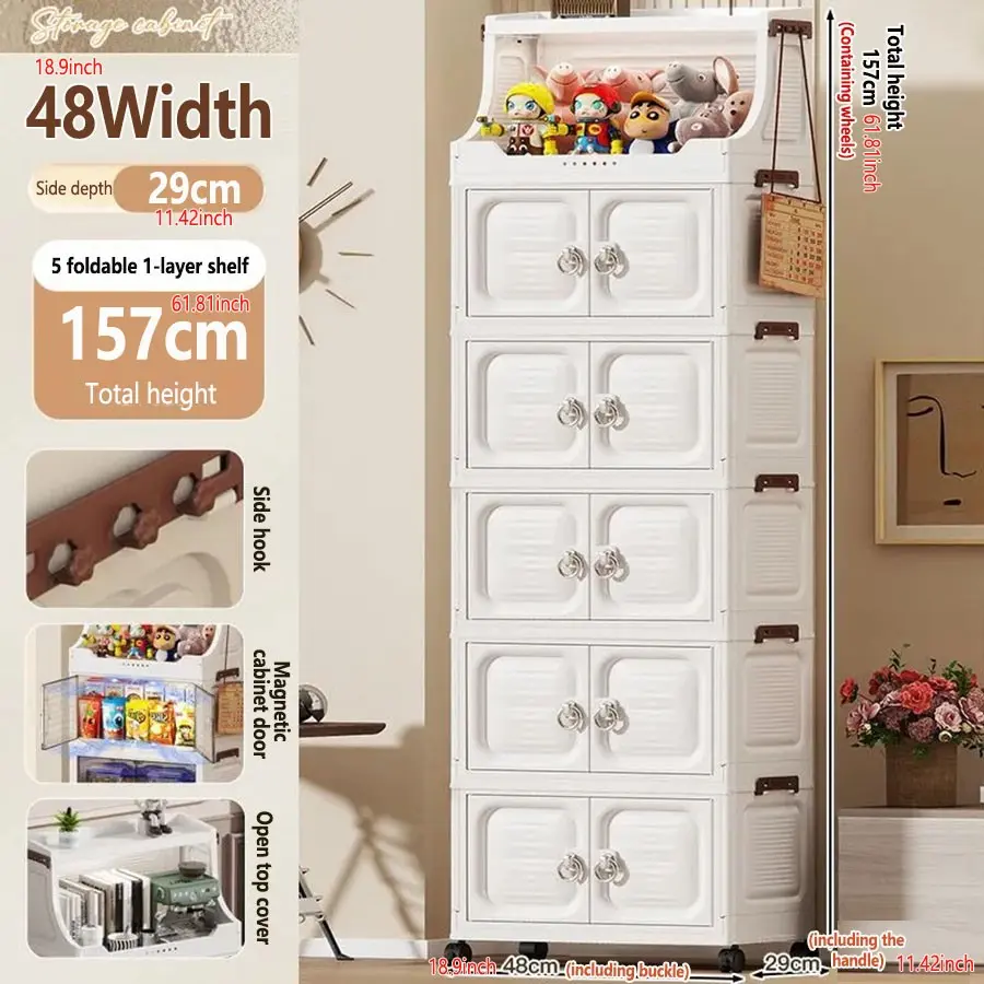 Foldable Storage Cabinet, Multi-Layer Home Bedroom Clothes Organizer, No Installation Living Room Plastic Shelf, Durable & Space-Saving Design, Drawers