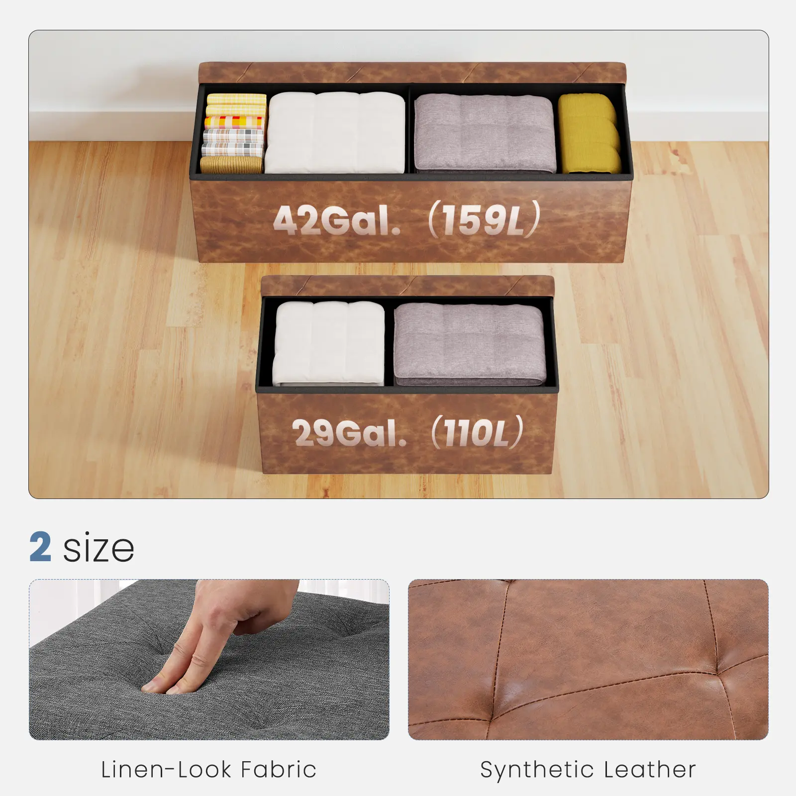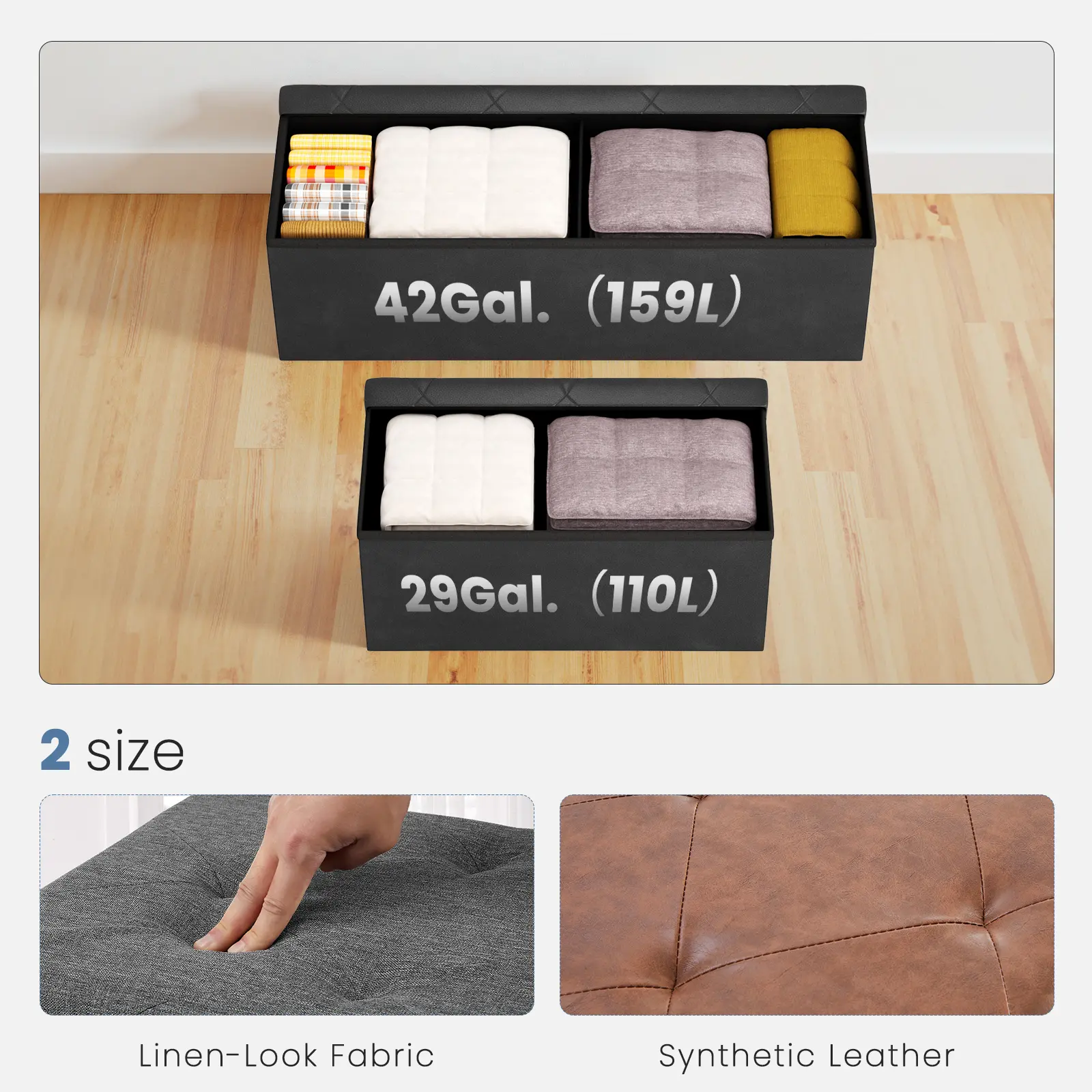 Foldable Storage Ottoman Bench 43in