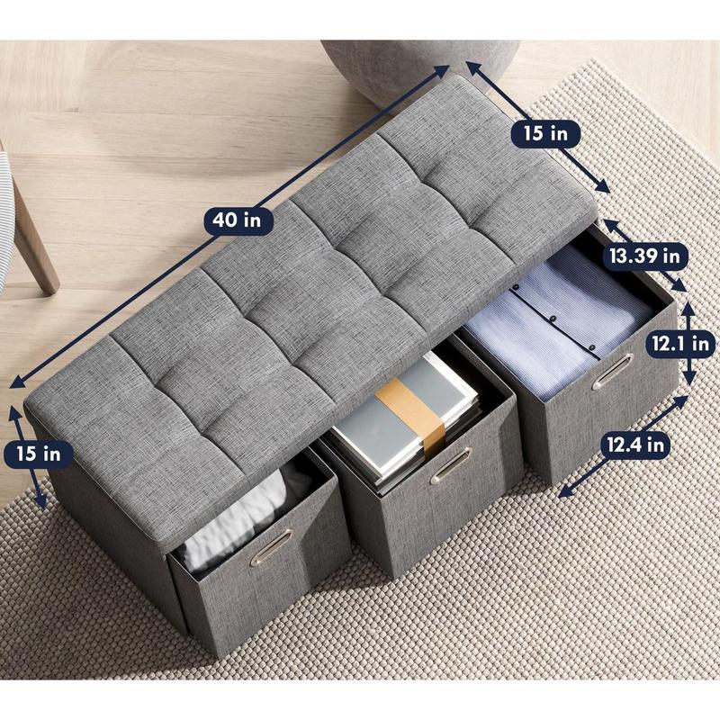 Ornavo Home Foldable Storage Long Bench Ottoman w/ 3 Drawers  #storagehacks #storagebench #organizedhome #tiktokshopcreatorpicks