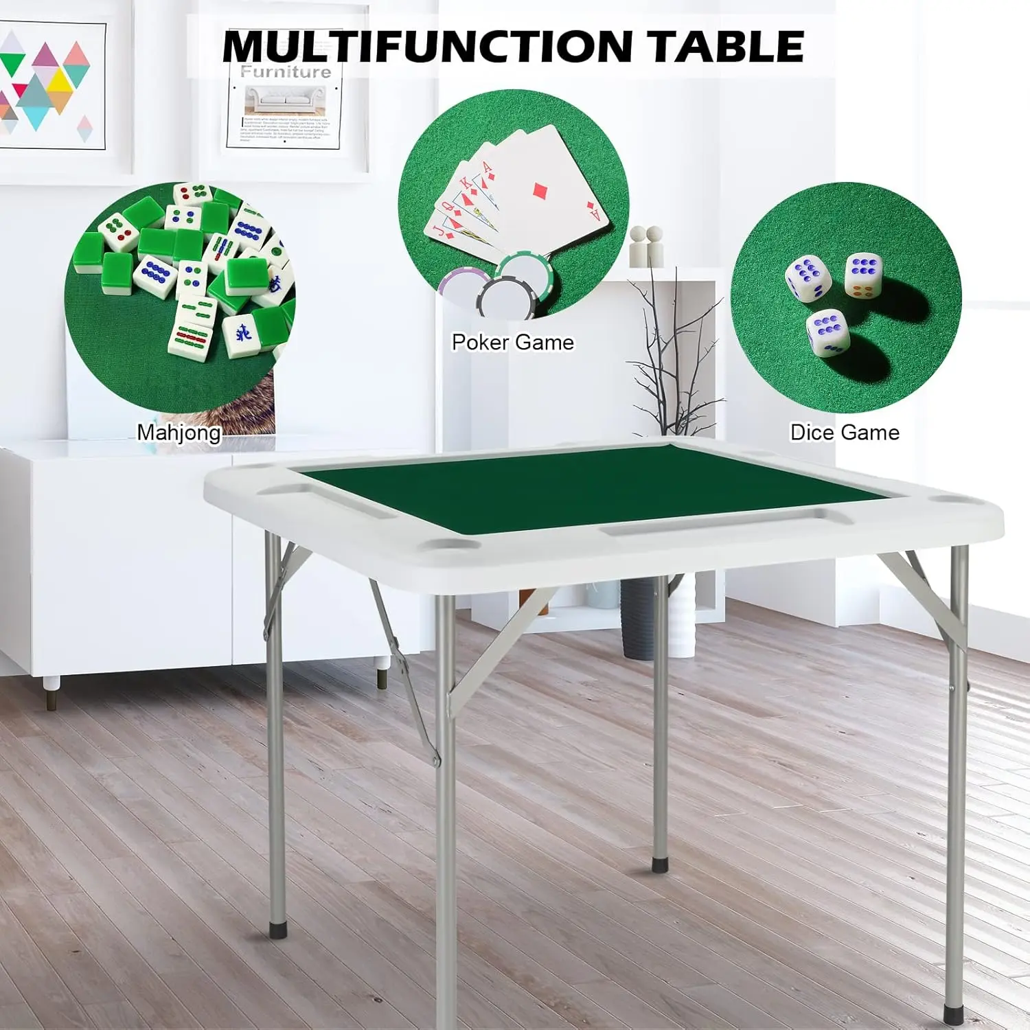 【Multipurpose Table】The multipurpose square folding table features white panels and a green nylon top. It fits on any flat surface and can be used for poker/ dominoes/ blackjack/ mahjong/ texas hold'em and any other type of game. It is the perfect choice for clubs, bars, game rooms, homes and other gathering occasions.