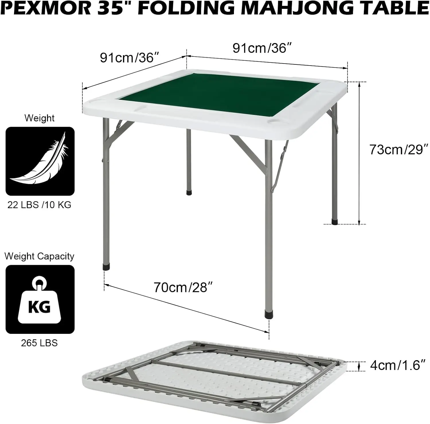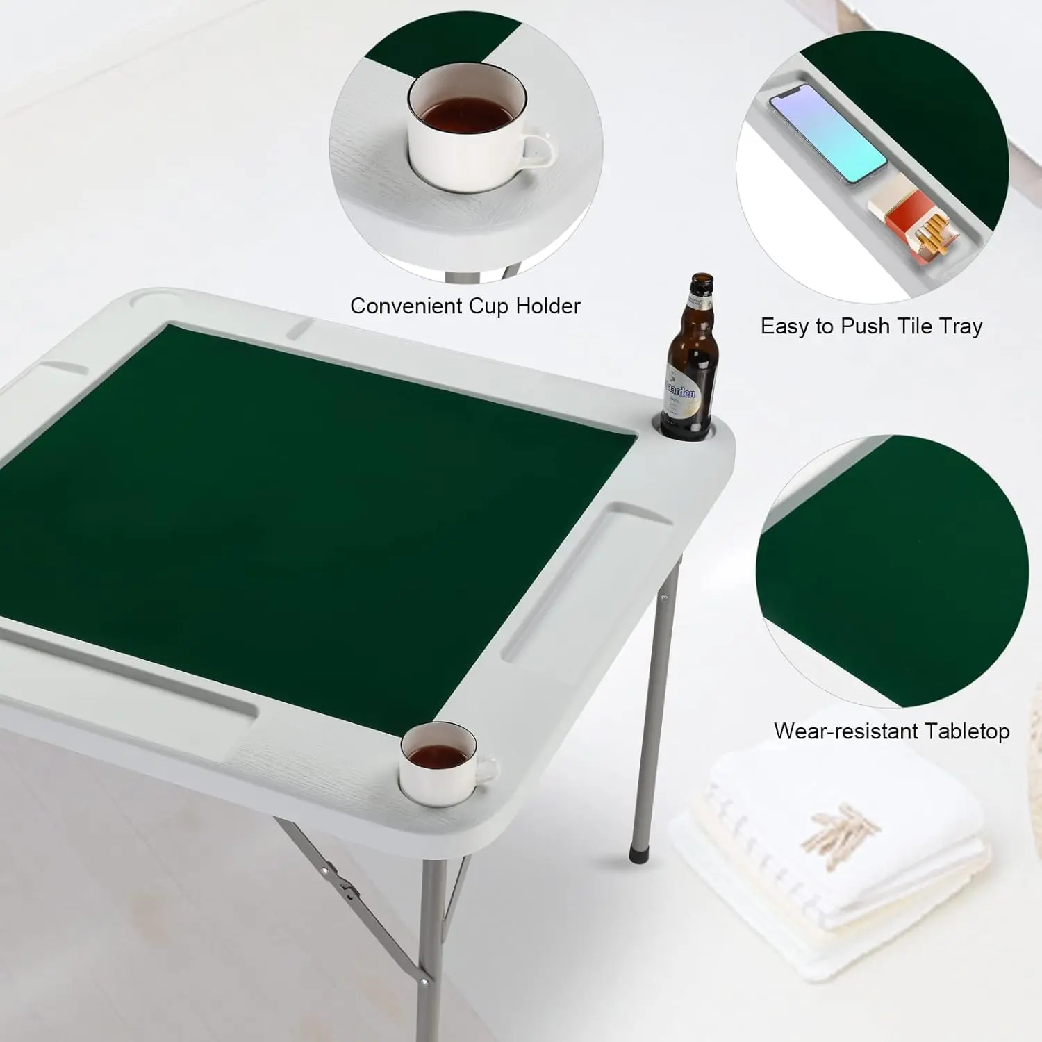 【Professional Wear-resistant Tabletop】The tabletop is made of skin-friendly felt, which provides a soft and comfortable touch.It has excellent wear resistance and easy to maintain. Besides, 35" x 35" (L x W) table top provides you with ample space for mahjong tiles, playing cards and other items.It allows 4 players to play comfortably.