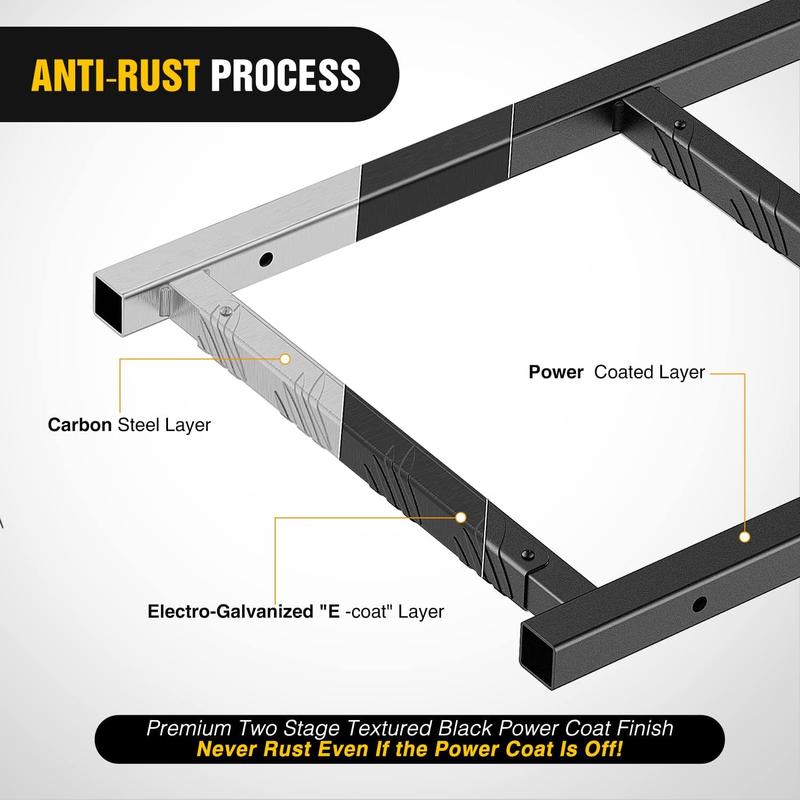With Electro-galvanized “E-Coat” layer and powder coated textured black finish, Nilght truck tailgate ladder will be anti-rust and much more durable