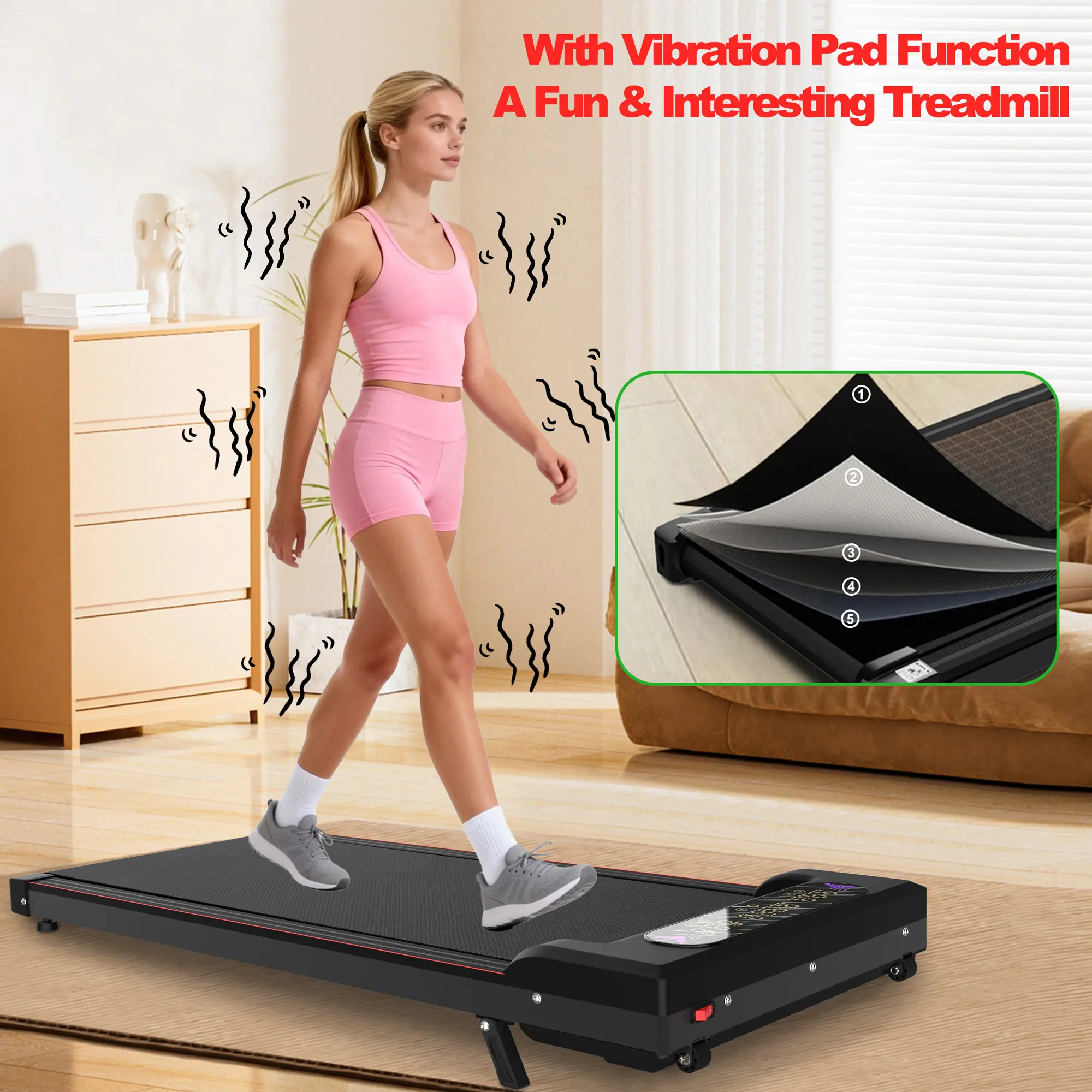 Maximize your home gym with dual functionality. It’s a full-featured walking pad/treadmill and a separate vibration plate for muscle recovery or warm-ups. The vertical foldable design and lightweight build (35 lbs) make storage under furniture effortless, perfect for apartments, home offices, and small spaces.