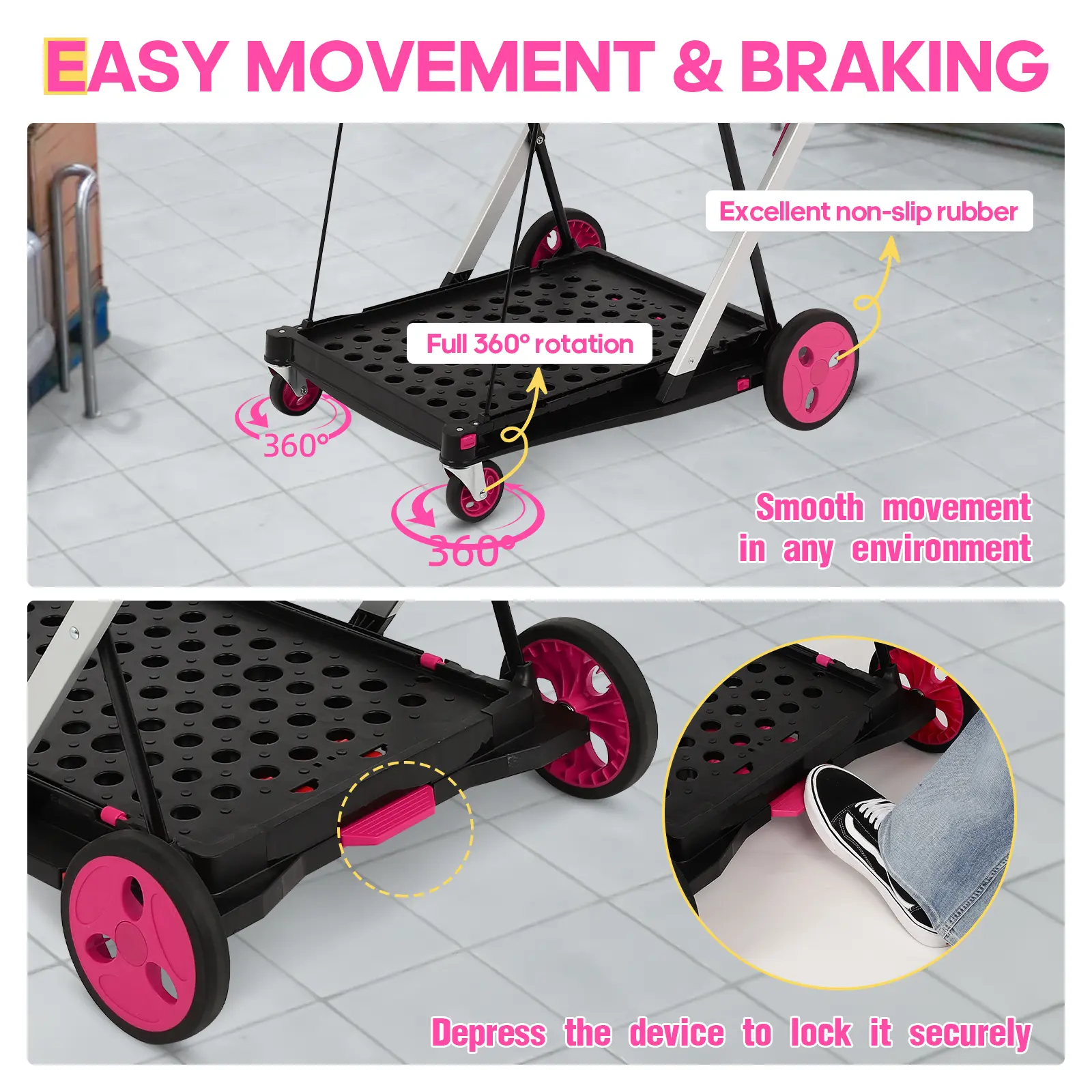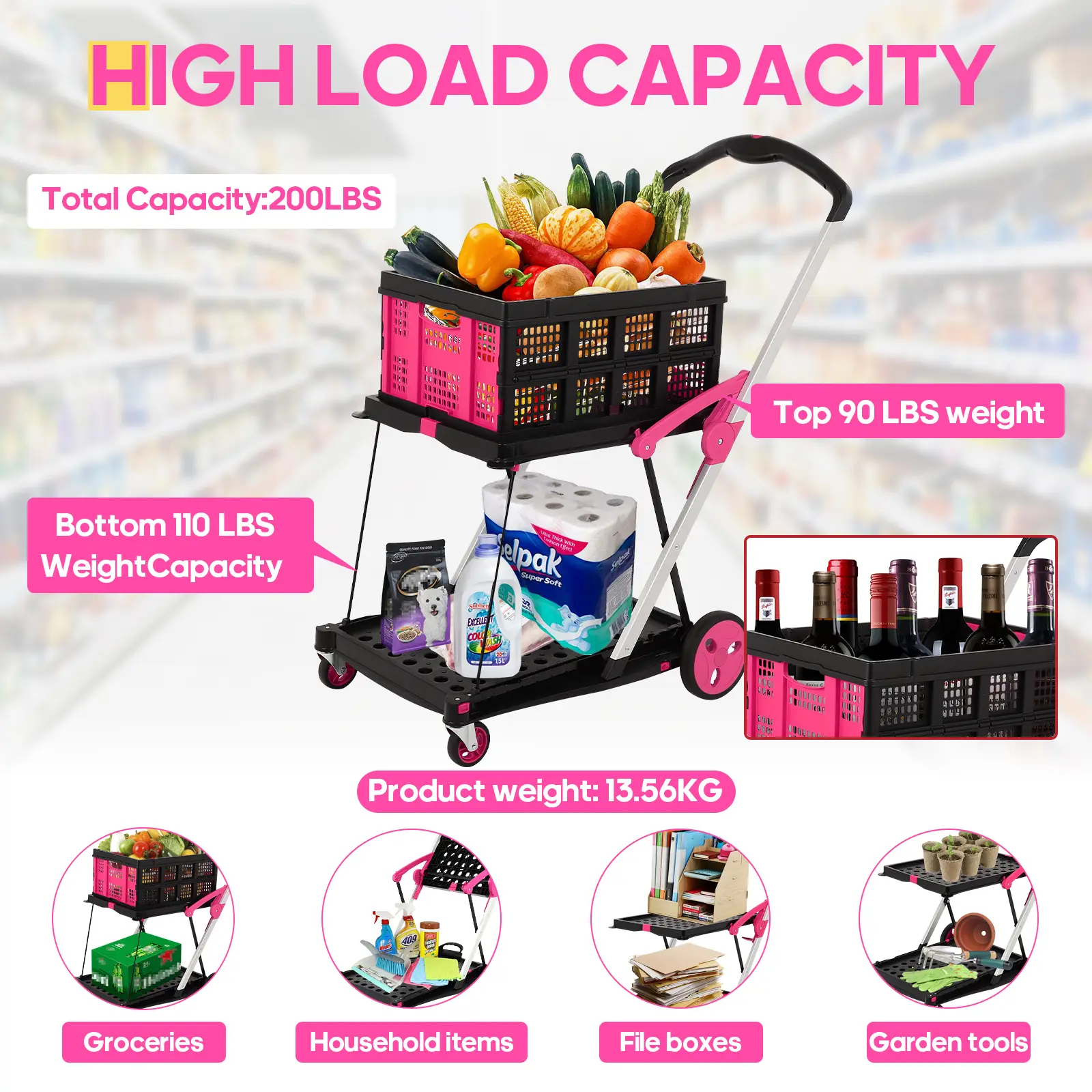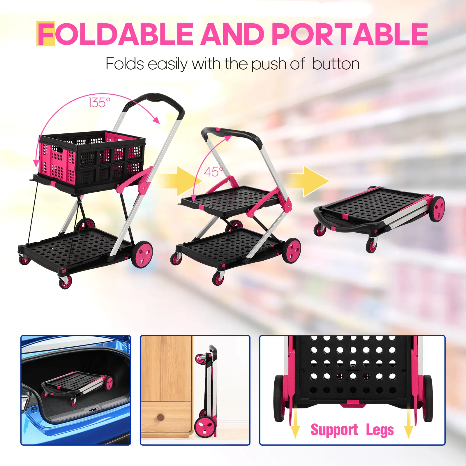 The quality surprised me in the best way—it handles heavy loads without wobbling, and the wheels roll smoothly on different surfaces. It’s lightweight but strong, easy to fold, and perfect for groceries, laundry, or everyday errands. Definitely worth the purchase.”