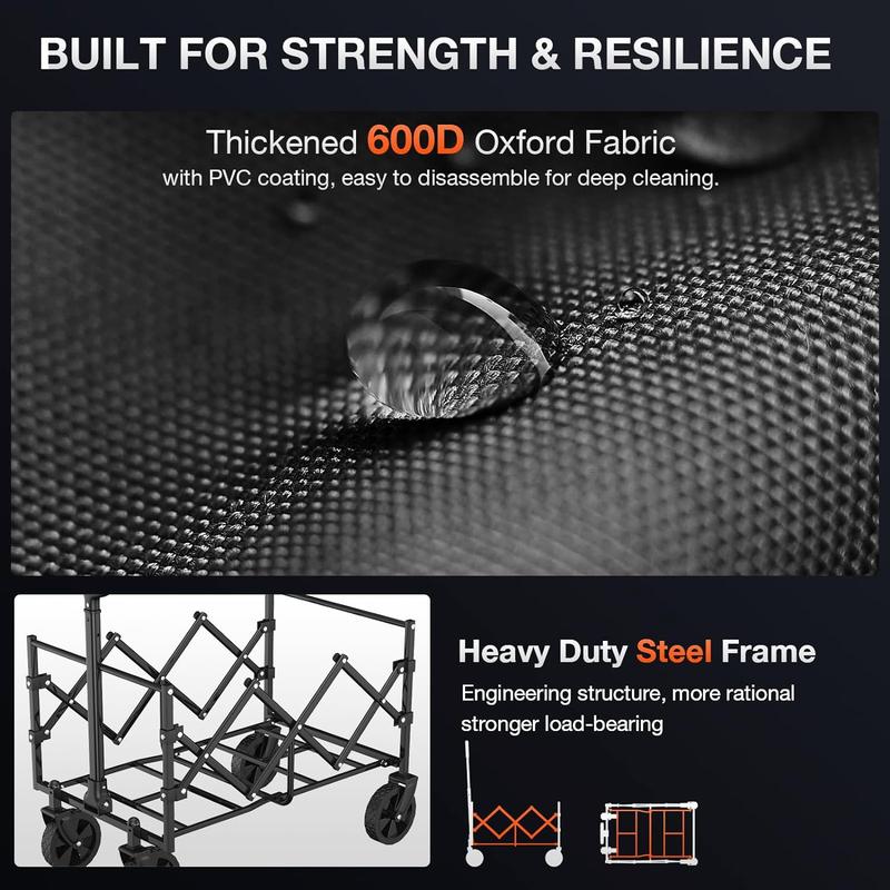 Just got mine delivered today seems like a great product very easy put together however it is a lot smaller than I anticipated. For reference I put two 5 gallon water jugs inside and that's all it holds definitely not going to be able to fit a lot of groceries inside the wagon or items