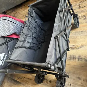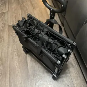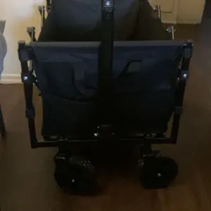 Just as described! The storage in the front and side are great bonuses! perfect for park days beach visits trick or treating, We will use it for years! Very sturdy my 15 year old got into it Shipping was just a few days and so close to Christmas!
