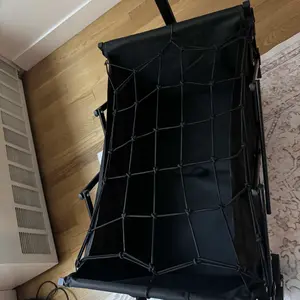 Is small but I like it to put my groceries in Is not heavy is very easy to fold it doesn’t take any space has to net pockets and a net